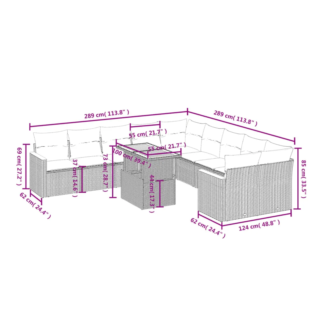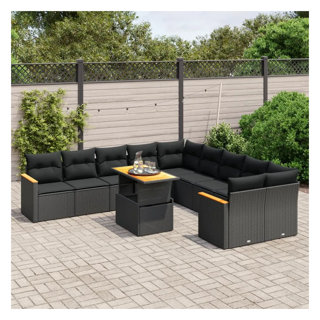 Cet ensemble de canapés de jardin est le complément parfait de votre arrière-cour, terrasse ou patio, offrant un espace confortable et accueillant pour discuter avec la famille et les amis ou simplement se détendre et profiter de l'extérieur. Matériau durable : la résine tressée, également connue sous le nom de poly rotin, est un matériau synthétique solide et nécessitant peu d'entretien qui ressemble au rotin naturel. Il est léger, facile à nettoyer et couramment utilisé pour les meubles d'extérieur en raison de sa durabilité et de ses propriétés de résistance aux intempéries.Dessus de table réglable : le dessus de table peut être soulevé pour rendre la table plus haute, ce qui transforme la table d'extérieur d'une table basse à une table de salle à manger. Elle est parfaite pour recevoir des invités ou prendre des repas à l'extérieur.Expérience d'assise confortable : ce mobilier d'extérieur, doté de coussins épais, offre une expérience d'assise confortable.Housse amovible et lavable : ces coussins de siège sont dotés de housses amovibles pour un lavage et un entretien faciles.Conception modulaire : cet ensemble de meubles d'extérieur a une conception modulaire, ce qui le rend complètement flexible et facile à déplacer, afin que vous puissiez créer un agencement de meubles d'extérieur personnalisé. Bon à savoir :Pour que vos meubles d'extérieur restent beaux, nous vous recommandons de les protéger avec une housse imperméable.