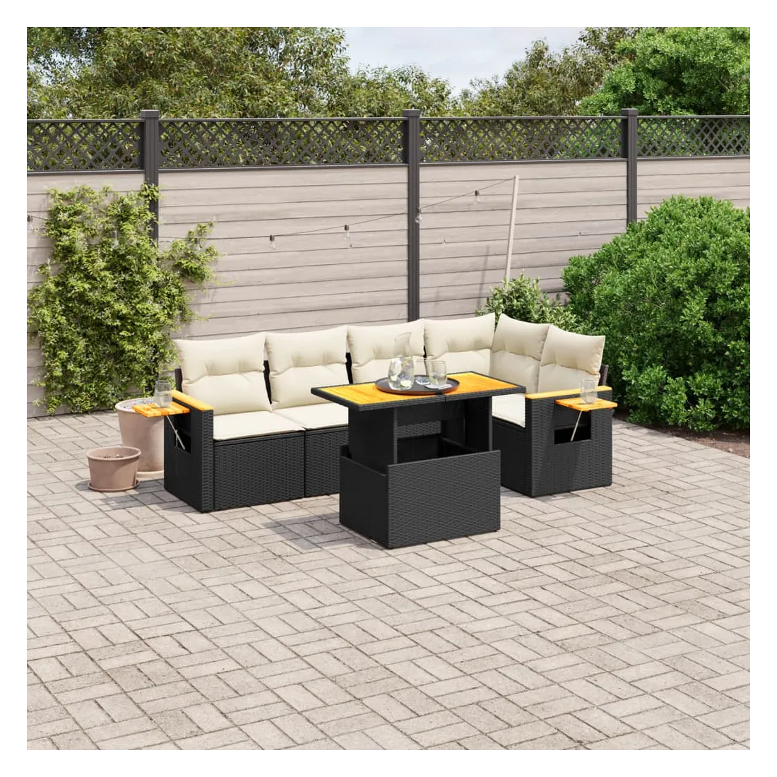 Salon de jardin 6 pcs avec coussins noir résine tressée