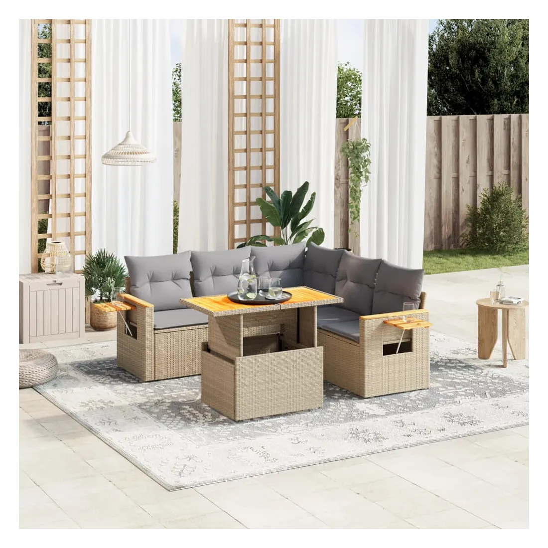 Cet ensemble de canapés de jardin est le complément parfait de votre arrière-cour, terrasse ou patio, offrant un espace confortable et accueillant pour discuter avec la famille et les amis ou simplement se détendre et profiter de l'extérieur. Matériau durable : la résine tressée, également connue sous le nom de poly rotin, est un matériau synthétique solide et nécessitant peu d'entretien qui ressemble au rotin naturel. Il est léger, facile à nettoyer et couramment utilisé pour les meubles d'extérieur en raison de sa durabilité et de ses propriétés de résistance aux intempéries.Dessus de table réglable : le dessus de table peut être soulevé pour rendre la table plus haute, ce qui transforme la table d'extérieur d'une table basse à une table de salle à manger. Elle est parfaite pour recevoir des invités ou prendre des repas à l'extérieur.Table d'appoint pratique : ce mobilier d'extérieur comprend une table d'appoint pliable avec un ressort à gaz sur les accoudoirs, offrant un endroit pratique pour garder vos essentiels à portée de main.Housse amovible et lavable : ces coussins de siège sont dotés de housses amovibles pour un lavage et un entretien faciles.Conception modulaire : cet ensemble de meubles d'extérieur a une conception modulaire, ce qui le rend complètement flexible et facile à déplacer, afin que vous puissiez créer un agencement de meubles d'extérieur personnalisé. Bon à savoir :Pour que vos meubles d'extérieur restent beaux, nous vous recommandons de les protéger avec une housse imperméable.