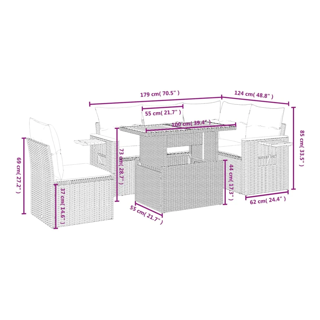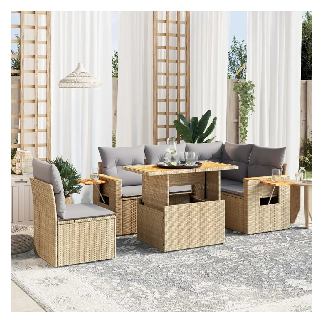 Salon de jardin avec coussins 6 pcs beige résine tressée