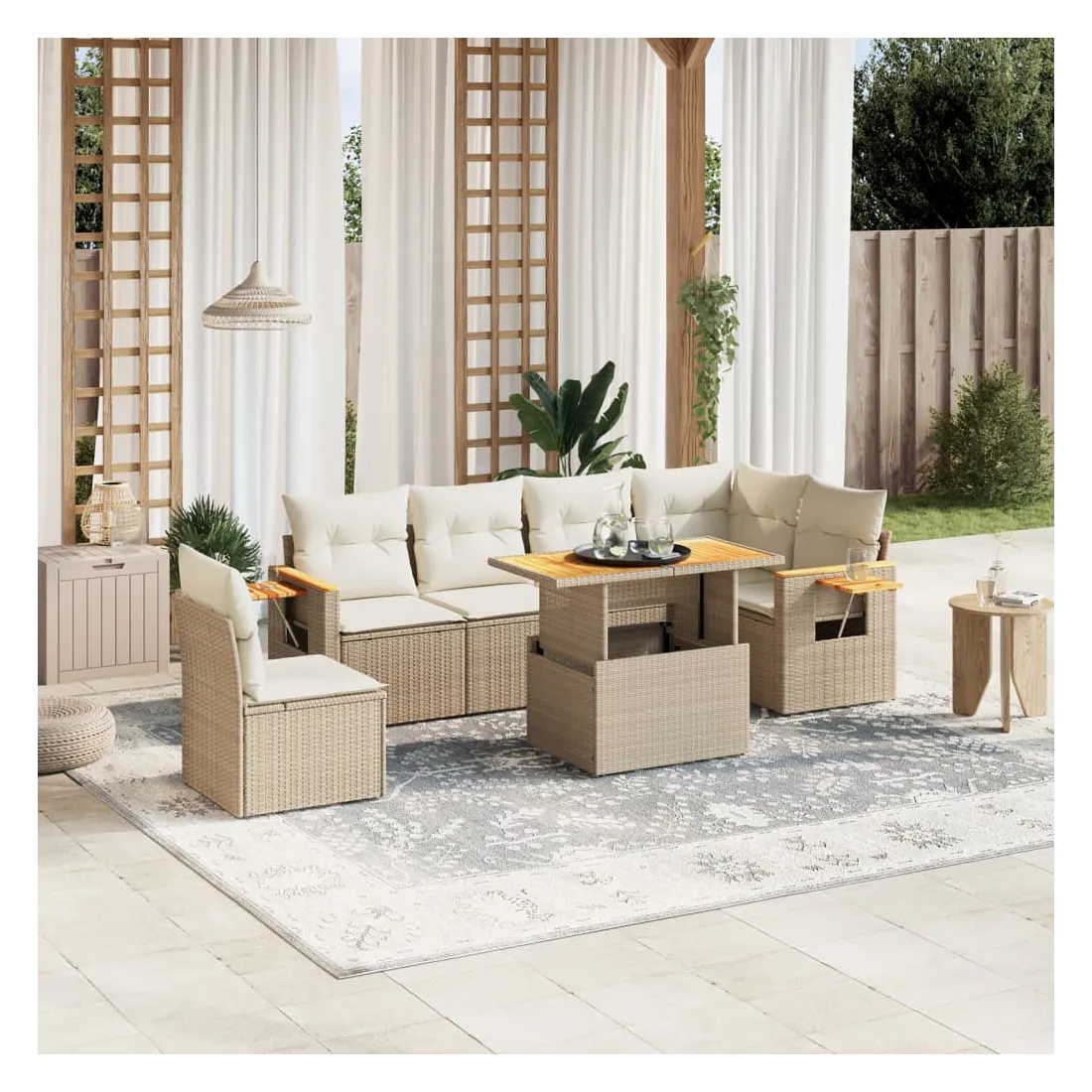 Cet ensemble de canapés de jardin est le complément parfait de votre arrière-cour, terrasse ou patio, offrant un espace confortable et accueillant pour discuter avec la famille et les amis ou simplement se détendre et profiter de l'extérieur. Matériau durable : la résine tressée, également connue sous le nom de poly rotin, est un matériau synthétique solide et nécessitant peu d'entretien qui ressemble au rotin naturel. Il est léger, facile à nettoyer et couramment utilisé pour les meubles d'extérieur en raison de sa durabilité et de ses propriétés de résistance aux intempéries.Dessus de table réglable : le dessus de table peut être soulevé pour rendre la table plus haute, ce qui transforme la table d'extérieur d'une table basse à une table de salle à manger. Elle est parfaite pour recevoir des invités ou prendre des repas à l'extérieur.Table d'appoint pratique : ce mobilier d'extérieur comprend une table d'appoint pliable avec un ressort à gaz sur les accoudoirs, offrant un endroit pratique pour garder vos essentiels à portée de main.Housse amovible et lavable : ces coussins de siège sont dotés de housses amovibles pour un lavage et un entretien faciles.Conception modulaire : cet ensemble de meubles d'extérieur a une conception modulaire, ce qui le rend complètement flexible et facile à déplacer, afin que vous puissiez créer un agencement de meubles d'extérieur personnalisé. Bon à savoir :Pour que vos meubles d'extérieur restent beaux, nous vous recommandons de les protéger avec une housse imperméable.