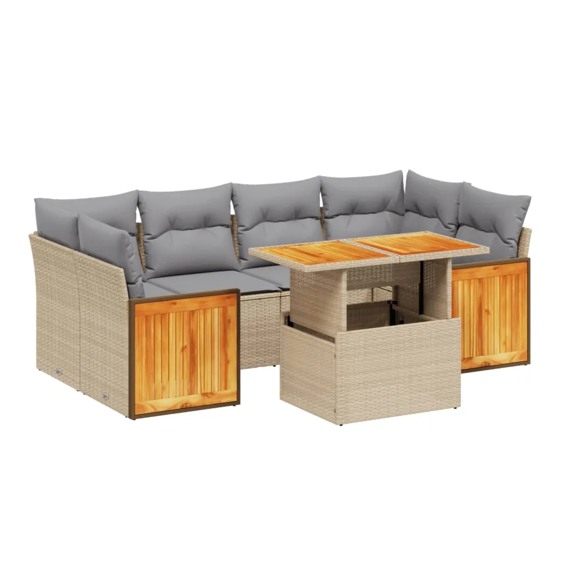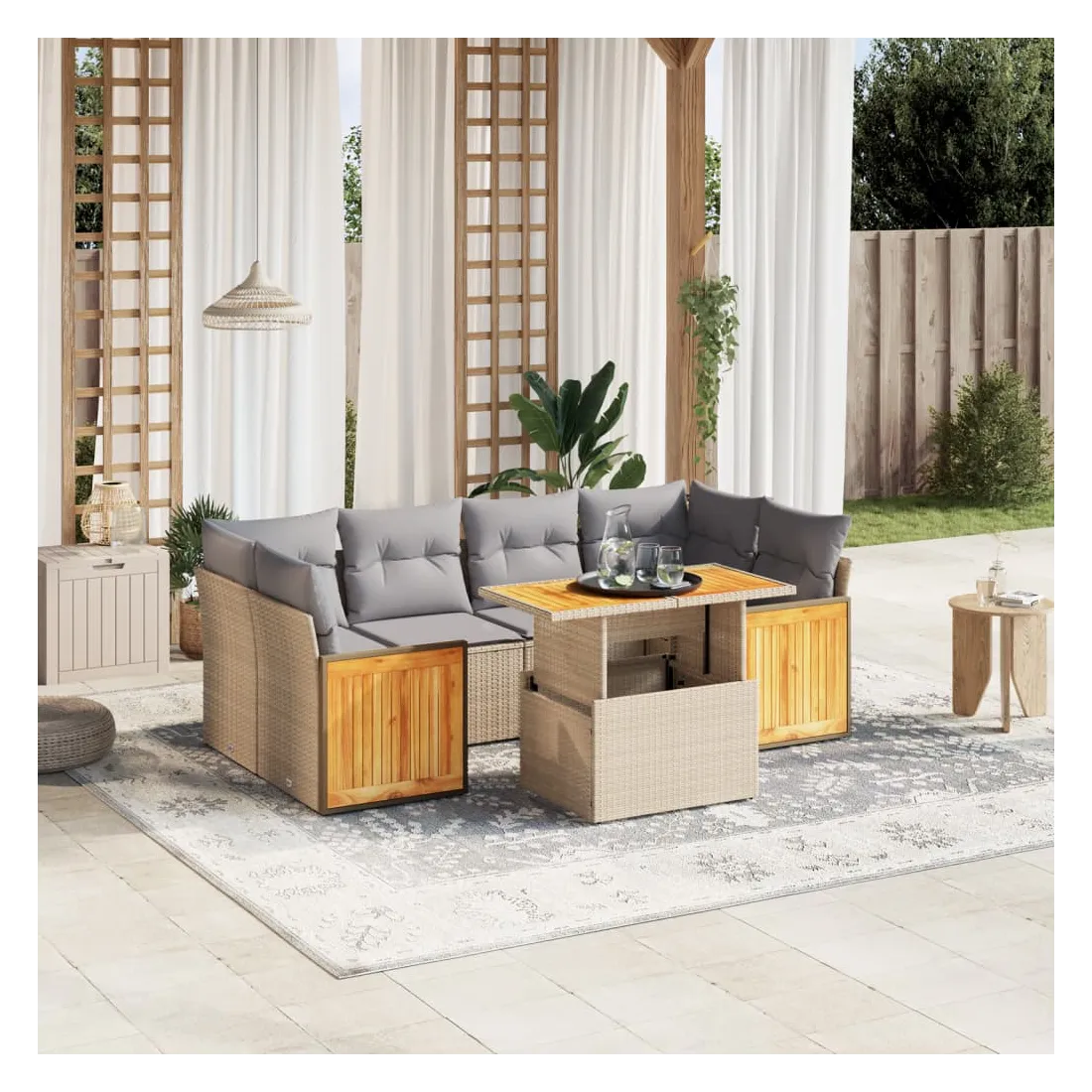 Cet ensemble de canapés de jardin est le complément parfait de votre arrière-cour, terrasse ou patio, offrant un espace confortable et accueillant pour discuter avec la famille et les amis ou simplement se détendre et profiter de l'extérieur. Matériau durable : la résine tressée, également connue sous le nom de poly rotin, est un matériau synthétique solide et nécessitant peu d'entretien qui ressemble au rotin naturel. Il est léger, facile à nettoyer et couramment utilisé pour les meubles d'extérieur en raison de sa durabilité et de ses propriétés de résistance aux intempéries.Dessus de table réglable : le dessus de table peut être soulevé pour rendre la table plus haute, ce qui transforme la table d'extérieur d'une table basse à une table de salle à manger. Elle est parfaite pour recevoir des invités ou prendre des repas à l'extérieur.Housse amovible et lavable : ces coussins de siège sont dotés de housses amovibles pour un lavage et un entretien faciles.Conception modulaire : cet ensemble de meubles d'extérieur a une conception modulaire, ce qui le rend complètement flexible et facile à déplacer, afin que vous puissiez créer un agencement de meubles d'extérieur personnalisé. Bon à savoir :Pour que vos meubles d'extérieur restent beaux, nous vous recommandons de les protéger avec une housse imperméable.