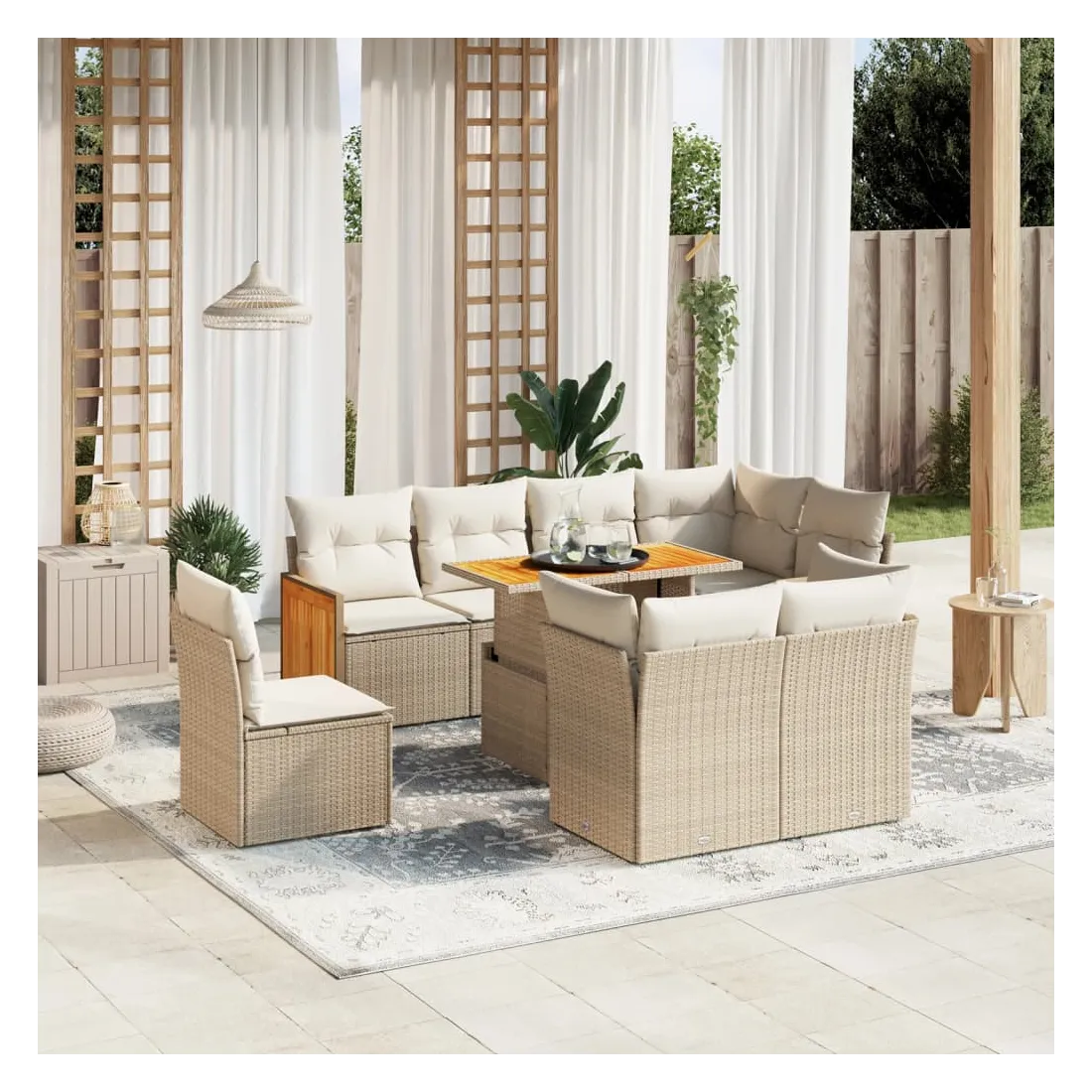 Cet ensemble de canapés de jardin est le complément parfait de votre arrière-cour, terrasse ou patio, offrant un espace confortable et accueillant pour discuter avec la famille et les amis ou simplement se détendre et profiter de l'extérieur. Matériau durable : la résine tressée, également connue sous le nom de poly rotin, est un matériau synthétique solide et nécessitant peu d'entretien qui ressemble au rotin naturel. Il est léger, facile à nettoyer et couramment utilisé pour les meubles d'extérieur en raison de sa durabilité et de ses propriétés de résistance aux intempéries.Dessus de table réglable : le dessus de table peut être soulevé pour rendre la table plus haute, ce qui transforme la table d'extérieur d'une table basse à une table de salle à manger. Elle est parfaite pour recevoir des invités ou prendre des repas à l'extérieur.Housse amovible et lavable : ces coussins de siège sont dotés de housses amovibles pour un lavage et un entretien faciles.Conception modulaire : cet ensemble de meubles d'extérieur a une conception modulaire, ce qui le rend complètement flexible et facile à déplacer, afin que vous puissiez créer un agencement de meubles d'extérieur personnalisé. Bon à savoir :Pour que vos meubles d'extérieur restent beaux, nous vous recommandons de les protéger avec une housse imperméable.