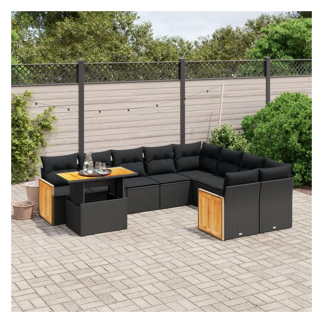 Salon de jardin 10 pcs avec coussins noir résine tressée