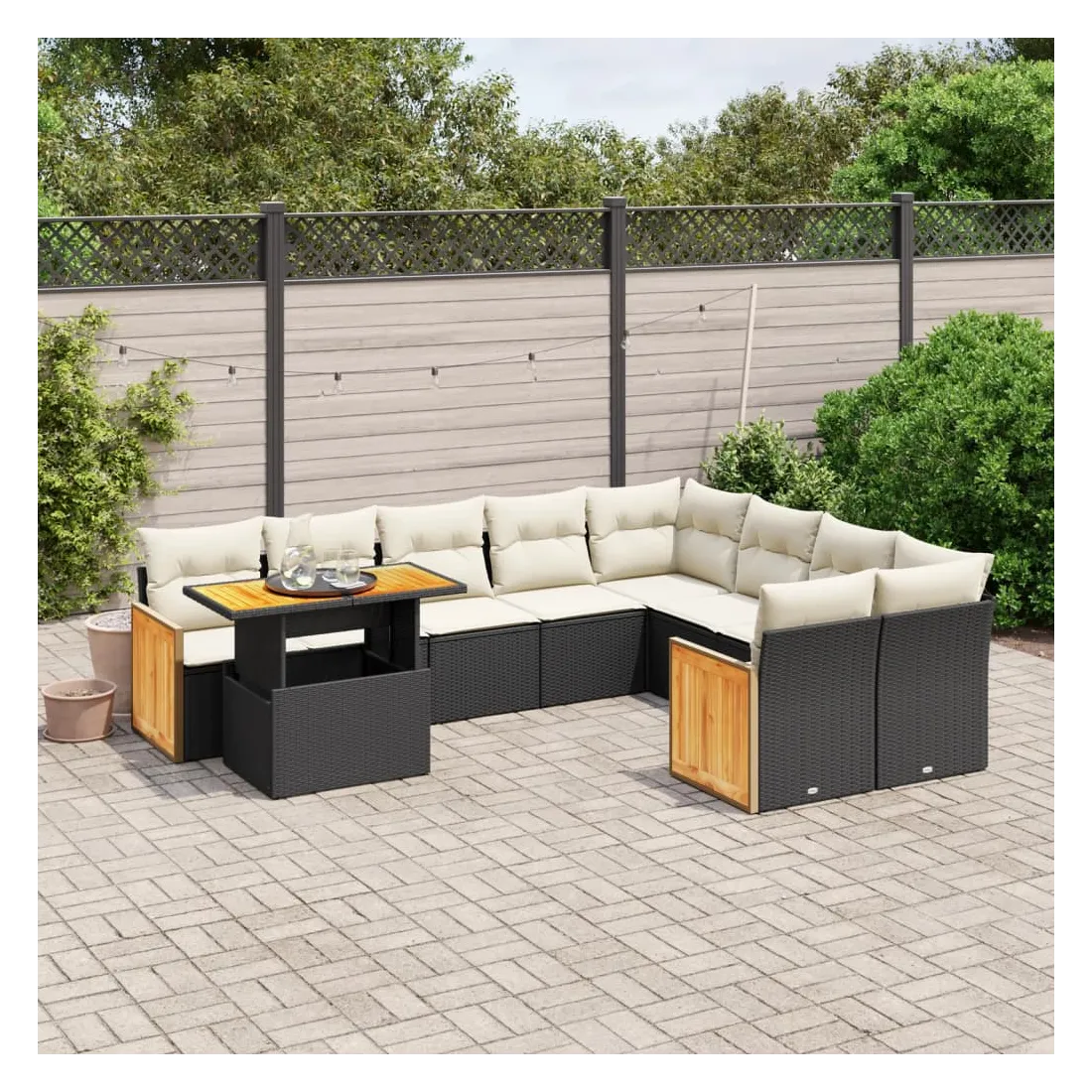 Cet ensemble de canapés de jardin est le complément parfait de votre arrière-cour, terrasse ou patio, offrant un espace confortable et accueillant pour discuter avec la famille et les amis ou simplement se détendre et profiter de l'extérieur. Matériau durable : la résine tressée, également connue sous le nom de poly rotin, est un matériau synthétique solide et nécessitant peu d'entretien qui ressemble au rotin naturel. Il est léger, facile à nettoyer et couramment utilisé pour les meubles d'extérieur en raison de sa durabilité et de ses propriétés de résistance aux intempéries.Dessus de table réglable : le dessus de table peut être soulevé pour rendre la table plus haute, ce qui transforme la table d'extérieur d'une table basse à une table de salle à manger. Elle est parfaite pour recevoir des invités ou prendre des repas à l'extérieur.Housse amovible et lavable : ces coussins de siège sont dotés de housses amovibles pour un lavage et un entretien faciles.Conception modulaire : cet ensemble de meubles d'extérieur a une conception modulaire, ce qui le rend complètement flexible et facile à déplacer, afin que vous puissiez créer un agencement de meubles d'extérieur personnalisé. Bon à savoir :Pour que vos meubles d'extérieur restent beaux, nous vous recommandons de les protéger avec une housse imperméable.
