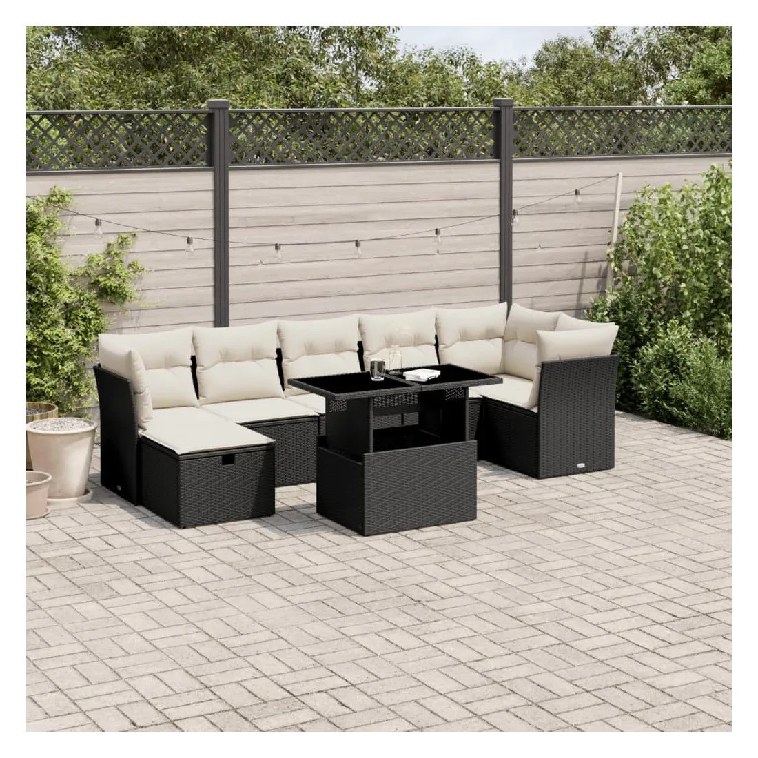 Cet ensemble de canapés de jardin est le complément parfait de votre arrière-cour, terrasse ou patio, offrant un espace confortable et accueillant pour discuter avec la famille et les amis ou simplement se détendre et profiter de l'extérieur. Matériau durable : la résine tressée, également connue sous le nom de poly rotin, est un matériau synthétique solide et nécessitant peu d'entretien qui ressemble au rotin naturel. Il est léger, facile à nettoyer et couramment utilisé pour les meubles d'extérieur en raison de sa durabilité et de ses propriétés de résistance aux intempéries.Dessus de table réglable : le dessus de table peut être soulevé pour rendre la table plus haute, ce qui transforme la table d'extérieur d'une table basse à une table de salle à manger. Elle est parfaite pour recevoir des invités ou prendre des repas à l'extérieur.Housse amovible et lavable : ces coussins de siège sont dotés de housses amovibles pour un lavage et un entretien faciles.Conception modulaire : cet ensemble de meubles d'extérieur a une conception modulaire, ce qui le rend complètement flexible et facile à déplacer, afin que vous puissiez créer un agencement de meubles d'extérieur personnalisé. Bon à savoir :Pour que vos meubles d'extérieur restent beaux, nous vous recommandons de les protéger avec une housse imperméable.