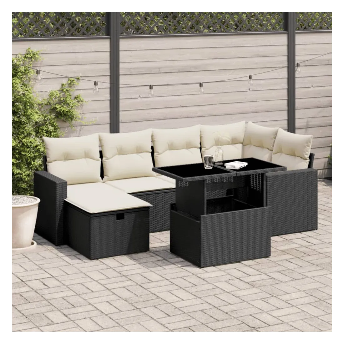 Cet ensemble de canapés de jardin est le complément parfait de votre arrière-cour, terrasse ou patio, offrant un espace confortable et accueillant pour discuter avec la famille et les amis ou simplement se détendre et profiter de l'extérieur. Matériau durable : la résine tressée, également connue sous le nom de poly rotin, est un matériau synthétique solide et nécessitant peu d'entretien qui ressemble au rotin naturel. Il est léger, facile à nettoyer et couramment utilisé pour les meubles d'extérieur en raison de sa durabilité et de ses propriétés de résistance aux intempéries.Dessus de table réglable : le dessus de table peut être soulevé pour rendre la table plus haute, ce qui transforme la table d'extérieur d'une table basse à une table de salle à manger. Elle est parfaite pour recevoir des invités ou prendre des repas à l'extérieur.Housse amovible et lavable : ces coussins de siège sont dotés de housses amovibles pour un lavage et un entretien faciles.Conception modulaire : cet ensemble de meubles d'extérieur a une conception modulaire, ce qui le rend complètement flexible et facile à déplacer, afin que vous puissiez créer un agencement de meubles d'extérieur personnalisé. Bon à savoir :Pour que vos meubles d'extérieur restent beaux, nous vous recommandons de les protéger avec une housse imperméable.