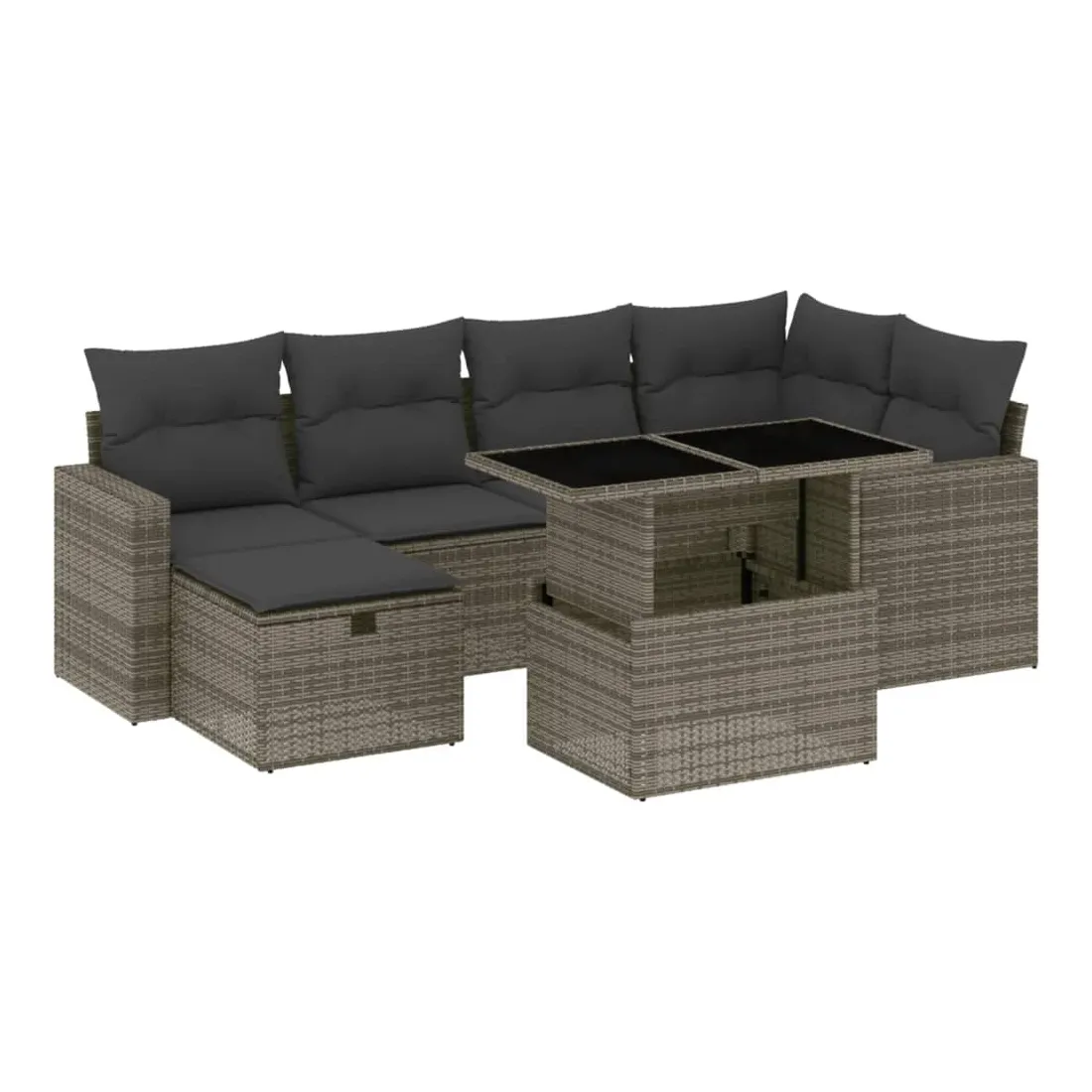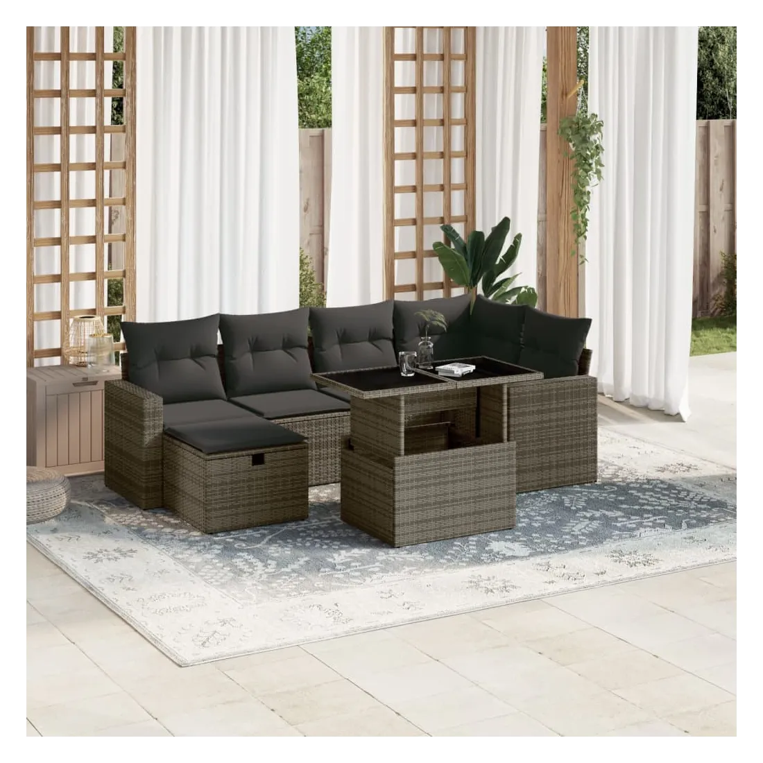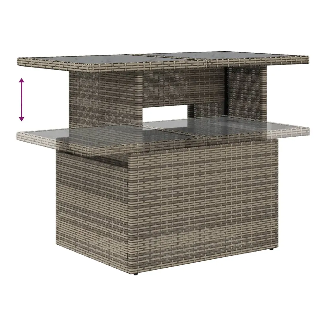 Cet ensemble de canapés de jardin est le complément parfait de votre arrière-cour, terrasse ou patio, offrant un espace confortable et accueillant pour discuter avec la famille et les amis ou simplement se détendre et profiter de l'extérieur. Matériau durable : la résine tressée, également connue sous le nom de poly rotin, est un matériau synthétique solide et nécessitant peu d'entretien qui ressemble au rotin naturel. Il est léger, facile à nettoyer et couramment utilisé pour les meubles d'extérieur en raison de sa durabilité et de ses propriétés de résistance aux intempéries.Dessus de table réglable : le dessus de table peut être soulevé pour rendre la table plus haute, ce qui transforme la table d'extérieur d'une table basse à une table de salle à manger. Elle est parfaite pour recevoir des invités ou prendre des repas à l'extérieur.Housse amovible et lavable : ces coussins de siège sont dotés de housses amovibles pour un lavage et un entretien faciles.Conception modulaire : cet ensemble de meubles d'extérieur a une conception modulaire, ce qui le rend complètement flexible et facile à déplacer, afin que vous puissiez créer un agencement de meubles d'extérieur personnalisé. Bon à savoir :Pour que vos meubles d'extérieur restent beaux, nous vous recommandons de les protéger avec une housse imperméable.