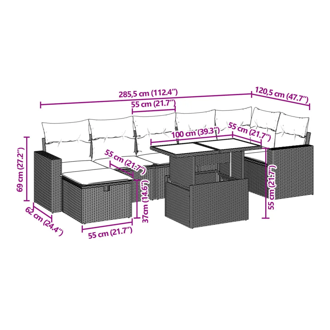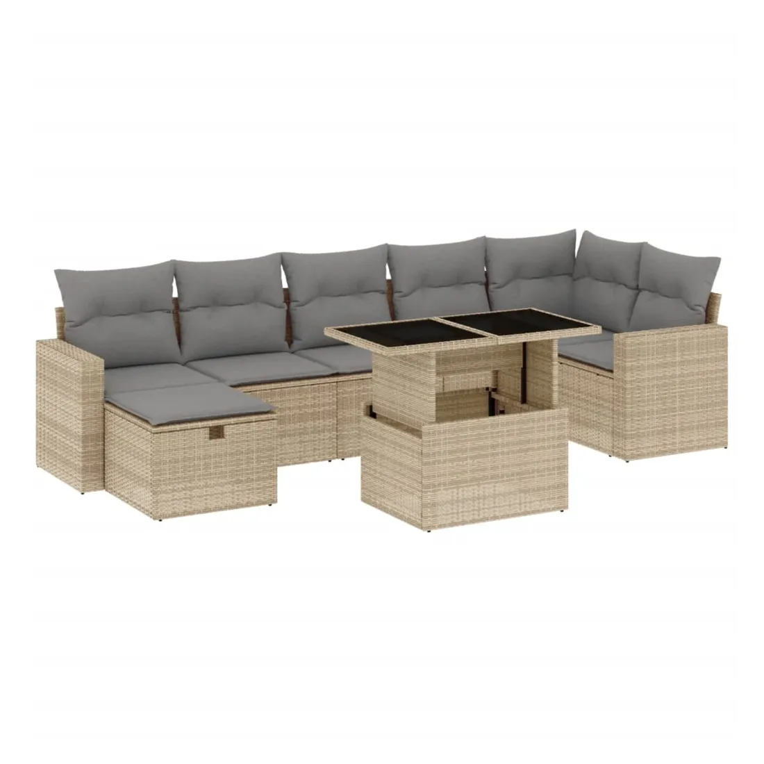 Salon de jardin avec coussins 8 pcs beige résine tressée