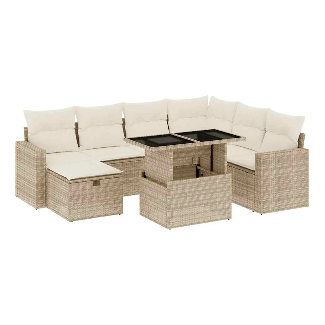 Salon de jardin avec coussins 8 pcs beige résine tressée