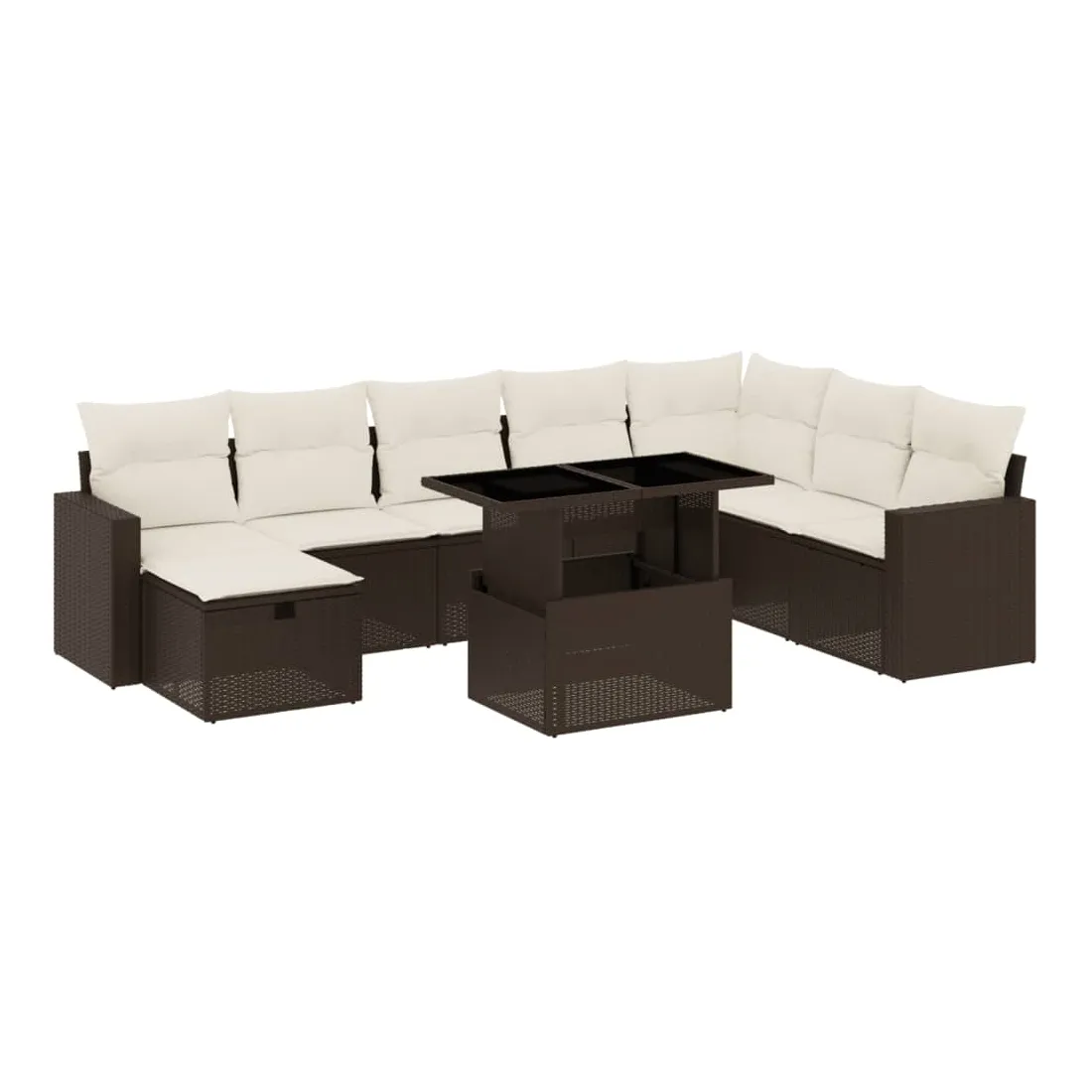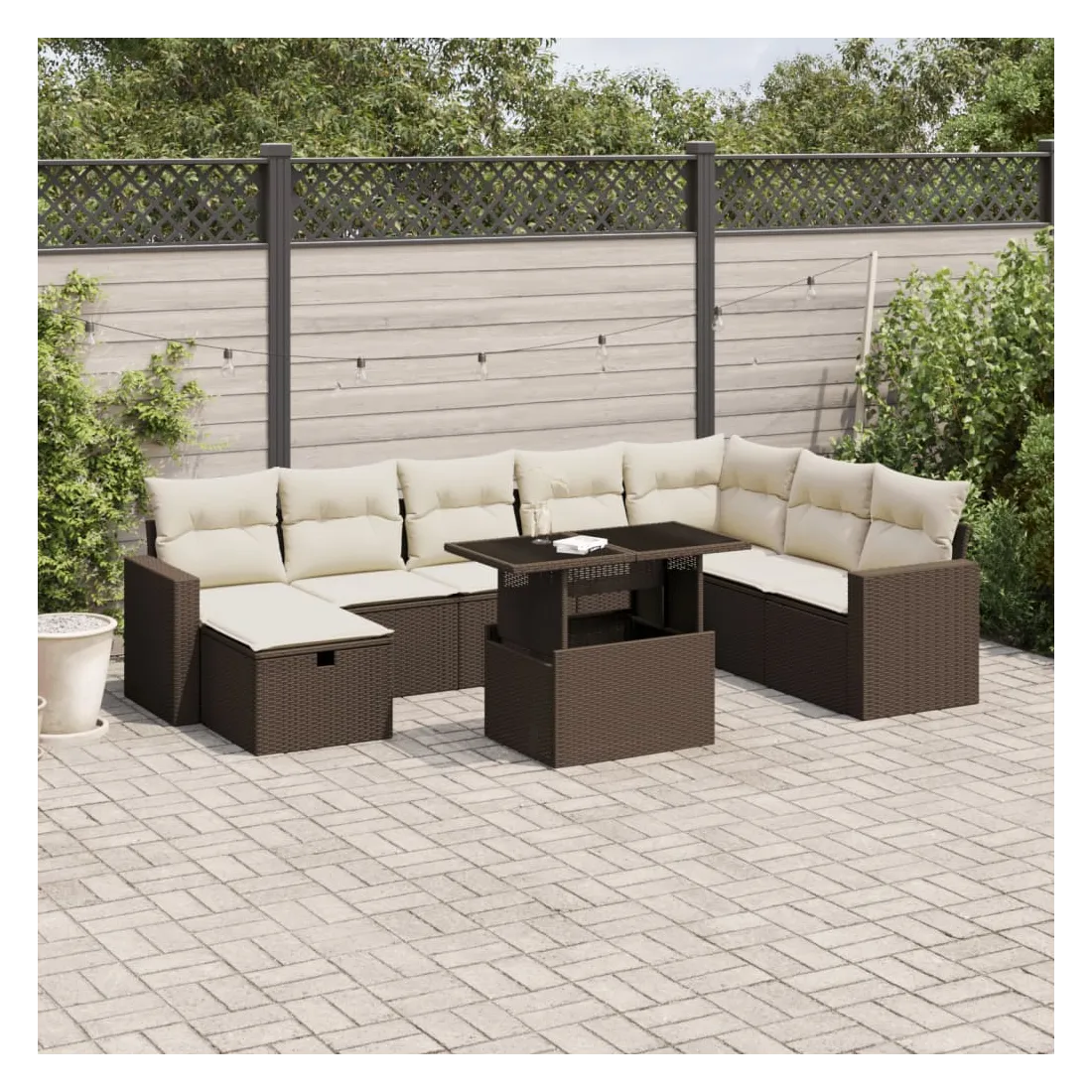 Cet ensemble de canapés de jardin est le complément parfait de votre arrière-cour, terrasse ou patio, offrant un espace confortable et accueillant pour discuter avec la famille et les amis ou simplement se détendre et profiter de l'extérieur. Matériau durable : la résine tressée, également connue sous le nom de poly rotin, est un matériau synthétique solide et nécessitant peu d'entretien qui ressemble au rotin naturel. Il est léger, facile à nettoyer et couramment utilisé pour les meubles d'extérieur en raison de sa durabilité et de ses propriétés de résistance aux intempéries.Dessus de table réglable : le dessus de table peut être soulevé pour rendre la table plus haute, ce qui transforme la table d'extérieur d'une table basse à une table de salle à manger. Elle est parfaite pour recevoir des invités ou prendre des repas à l'extérieur.Housse amovible et lavable : ces coussins de siège sont dotés de housses amovibles pour un lavage et un entretien faciles.Conception modulaire : cet ensemble de meubles d'extérieur a une conception modulaire, ce qui le rend complètement flexible et facile à déplacer, afin que vous puissiez créer un agencement de meubles d'extérieur personnalisé. Bon à savoir :Pour que vos meubles d'extérieur restent beaux, nous vous recommandons de les protéger avec une housse imperméable.