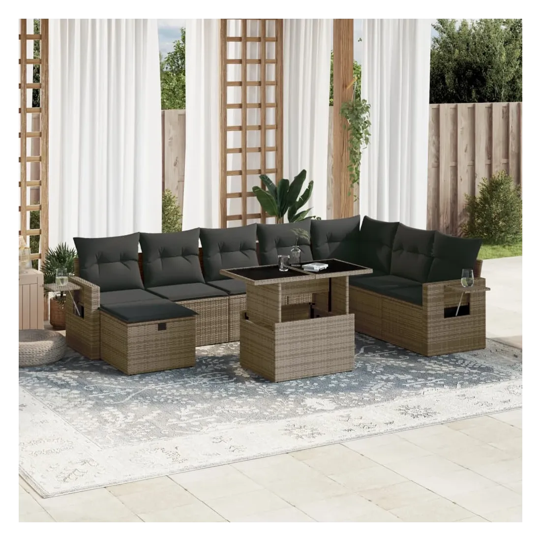 Cet ensemble de canapés de jardin est le complément parfait de votre arrière-cour, terrasse ou patio, offrant un espace confortable et accueillant pour discuter avec la famille et les amis ou simplement se détendre et profiter de l'extérieur. Matériau durable : la résine tressée, également connue sous le nom de poly rotin, est un matériau synthétique solide et nécessitant peu d'entretien qui ressemble au rotin naturel. Il est léger, facile à nettoyer et couramment utilisé pour les meubles d'extérieur en raison de sa durabilité et de ses propriétés de résistance aux intempéries.Dessus de table réglable : le dessus de table peut être soulevé pour rendre la table plus haute, ce qui transforme la table d'extérieur d'une table basse à une table de salle à manger. Elle est parfaite pour recevoir des invités ou prendre des repas à l'extérieur.Housse amovible et lavable : ces coussins de siège sont dotés de housses amovibles pour un lavage et un entretien faciles.Conception modulaire : cet ensemble de meubles d'extérieur a une conception modulaire, ce qui le rend complètement flexible et facile à déplacer, afin que vous puissiez créer un agencement de meubles d'extérieur personnalisé. Bon à savoir :Pour que vos meubles d'extérieur restent beaux, nous vous recommandons de les protéger avec une housse imperméable.