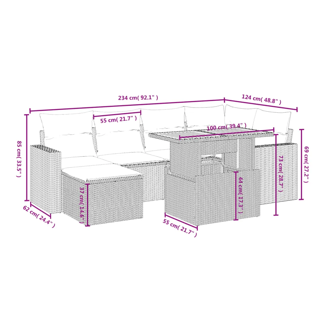Cet ensemble de canapés de jardin est le complément parfait de votre arrière-cour, terrasse ou patio, offrant un espace confortable et accueillant pour discuter avec la famille et les amis ou simplement se détendre et profiter de l'extérieur. Matériau durable : la résine tressée, également connue sous le nom de poly rotin, est un matériau synthétique solide et nécessitant peu d'entretien qui ressemble au rotin naturel. Il est léger, facile à nettoyer et couramment utilisé pour les meubles d'extérieur en raison de sa durabilité et de ses propriétés de résistance aux intempéries.Dessus de table réglable : le dessus de table peut être soulevé pour rendre la table plus haute, ce qui transforme la table d'extérieur d'une table basse à une table de salle à manger. Elle est parfaite pour recevoir des invités ou prendre des repas à l'extérieur.Housse amovible et lavable : ces coussins de siège sont dotés de housses amovibles pour un lavage et un entretien faciles.Conception modulaire : cet ensemble de meubles d'extérieur a une conception modulaire, ce qui le rend complètement flexible et facile à déplacer, afin que vous puissiez créer un agencement de meubles d'extérieur personnalisé. Bon à savoir :Pour que vos meubles d'extérieur restent beaux, nous vous recommandons de les protéger avec une housse imperméable.