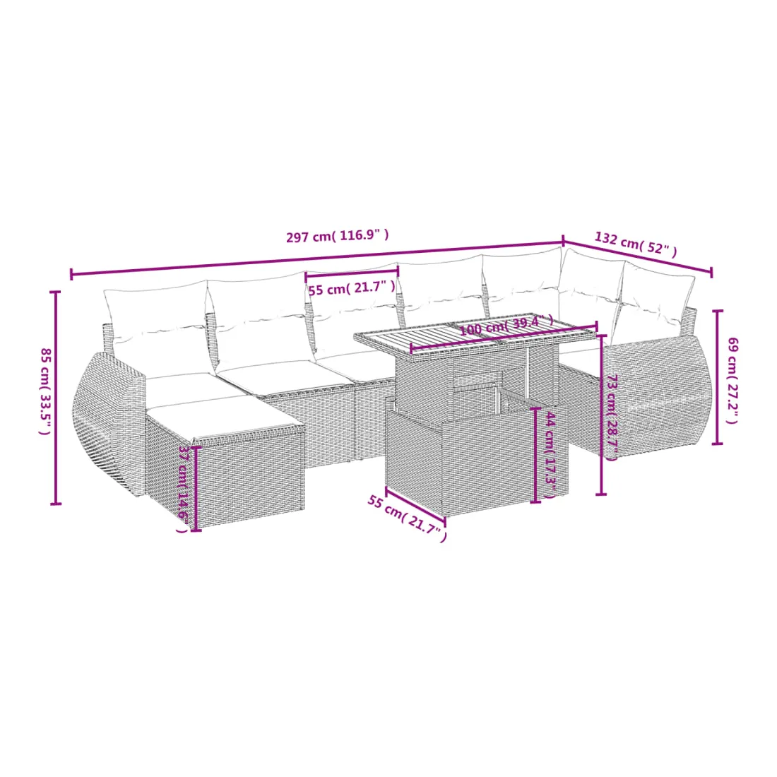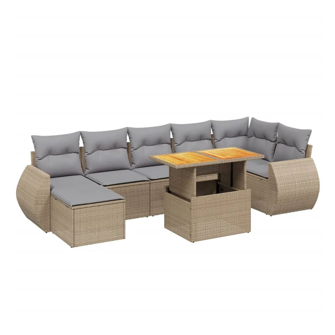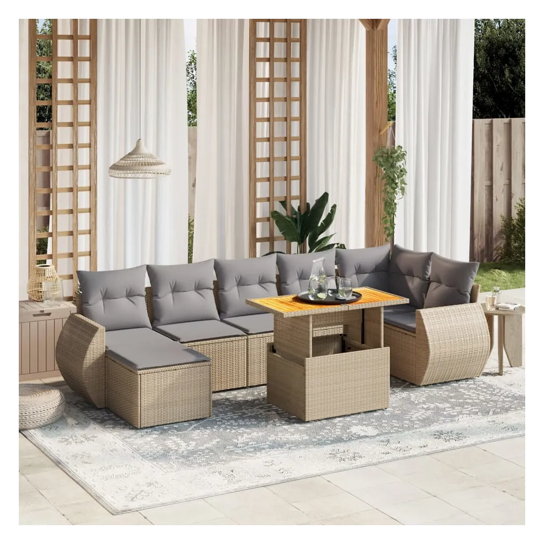 Salon de jardin avec coussins 8 pcs beige résine tressée