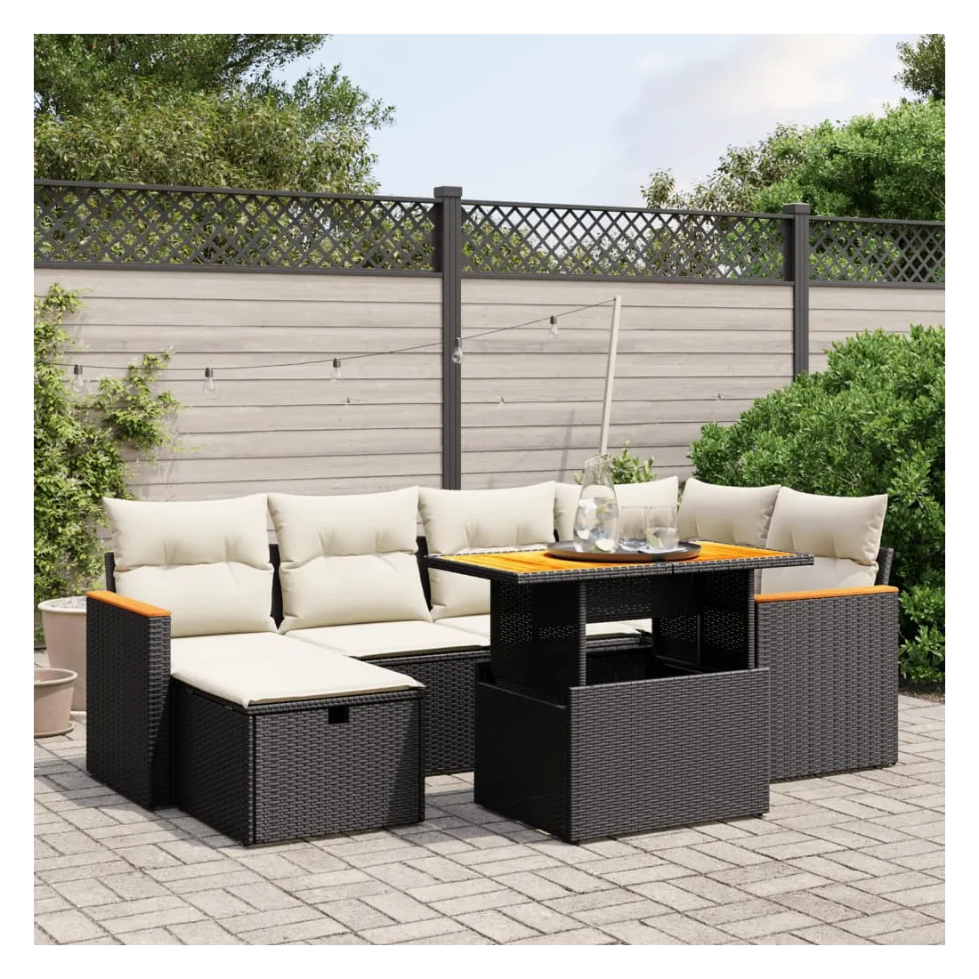 - Matériau : résine tressée, acier enduit de poudre, bois d'acacia massif avec finition à l'huile