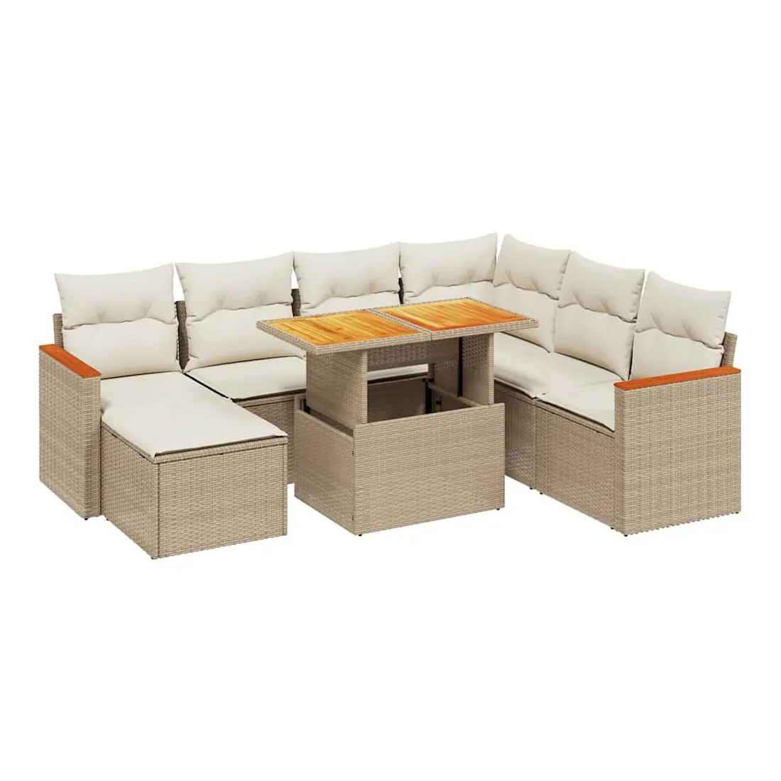 Salon de jardin avec coussins 8 pcs beige résine tressée