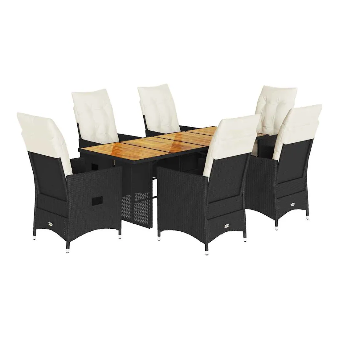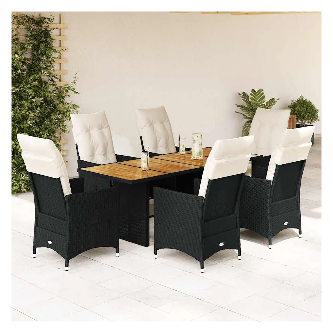 Cet ensemble de salle à manger de jardin est un excellent choix pour les repas en plein air ou pour vous détendre dans le jardin, dans l'arrière-cour ou sur la terrasse. Matériau durable : la résine tressée, également connue sous le nom de poly rotin, est un matériau synthétique solide et nécessitant peu d'entretien qui ressemble au rotin naturel. Elle est légère, facile à nettoyer et couramment utilisée pour les meubles d'extérieur en raison de sa durabilité et de ses propriétés de résistance aux intempéries.Dossier réglable : ce siège de jardin est doté d'une poignée. Vous pouvez régler le dossier dans n'importe quelle position en tirant sur la poignée et le remettre rapidement dans sa position initiale.Dessus stable et facile à nettoyer : cette table de jardin a un dessus en bois d'acacia robuste, durable et facile à nettoyer avec un chiffon humide.Expérience d'assise confortable : cet ensemble de meubles d'extérieur, doté de coussins épais, offre une expérience d'assise confortable.Housse amovible et lavable : ces coussins de siège sont dotés de housses amovibles pour un lavage et un entretien faciles. Les coussins de dossier ont un rabat à l'arrière pour une fixation facile aux dossiers. Bon à savoir :Pour que vos meubles d'extérieur restent beaux, nous vous recommandons de les protéger avec une housse imperméable.