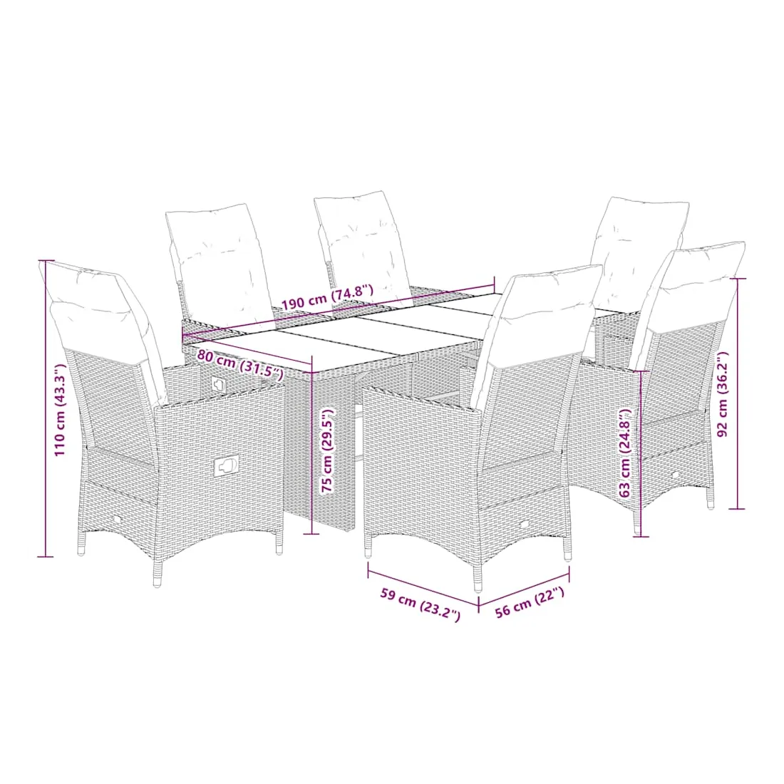 - Dimensions : 190 x 80 x 75 cm (L x l x H)
