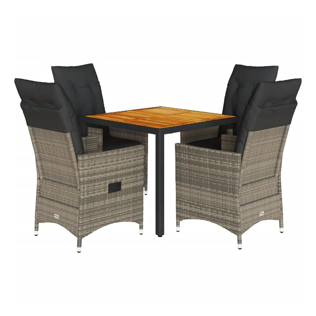 Cet ensemble de salle à manger de jardin est un excellent choix pour les repas en plein air ou pour vous détendre dans le jardin, dans l'arrière-cour ou sur la terrasse. Matériau durable : la résine tressée, également connue sous le nom de poly rotin, est un matériau synthétique solide et nécessitant peu d'entretien qui ressemble au rotin naturel. Il est léger, facile à nettoyer et couramment utilisé pour les meubles d'extérieur en raison de sa durabilité et de ses propriétés de résistance aux intempéries.Dossier réglable : ce siège de jardin est doté d'une poignée. Vous pouvez régler le dossier dans n'importe quelle position en tirant sur la poignée et le remettre rapidement dans sa position initiale.Dessus stable et facile à nettoyer : cette table de jardin a un dessus en bois d'acacia robuste, durable et facile à nettoyer avec un chiffon humide.Expérience d'assise confortable : cet ensemble de meubles d'extérieur, doté de coussins épais, offre une expérience d'assise confortable.Housse amovible et lavable : ces coussins de siège sont dotés de housses amovibles pour un lavage et un entretien faciles. Les coussins de dossier ont un rabat à l'arrière pour une fixation facile aux dossiers. Bon à savoir :Pour que vos meubles d'extérieur restent beaux, nous vous recommandons de les protéger avec une housse imperméable.