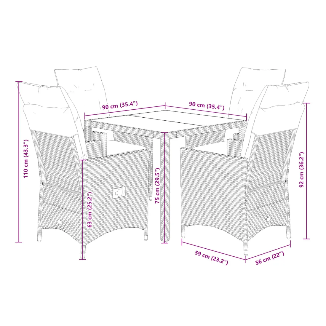 - Dimensions : 90 x 90 x 75 cm (L x l x H)