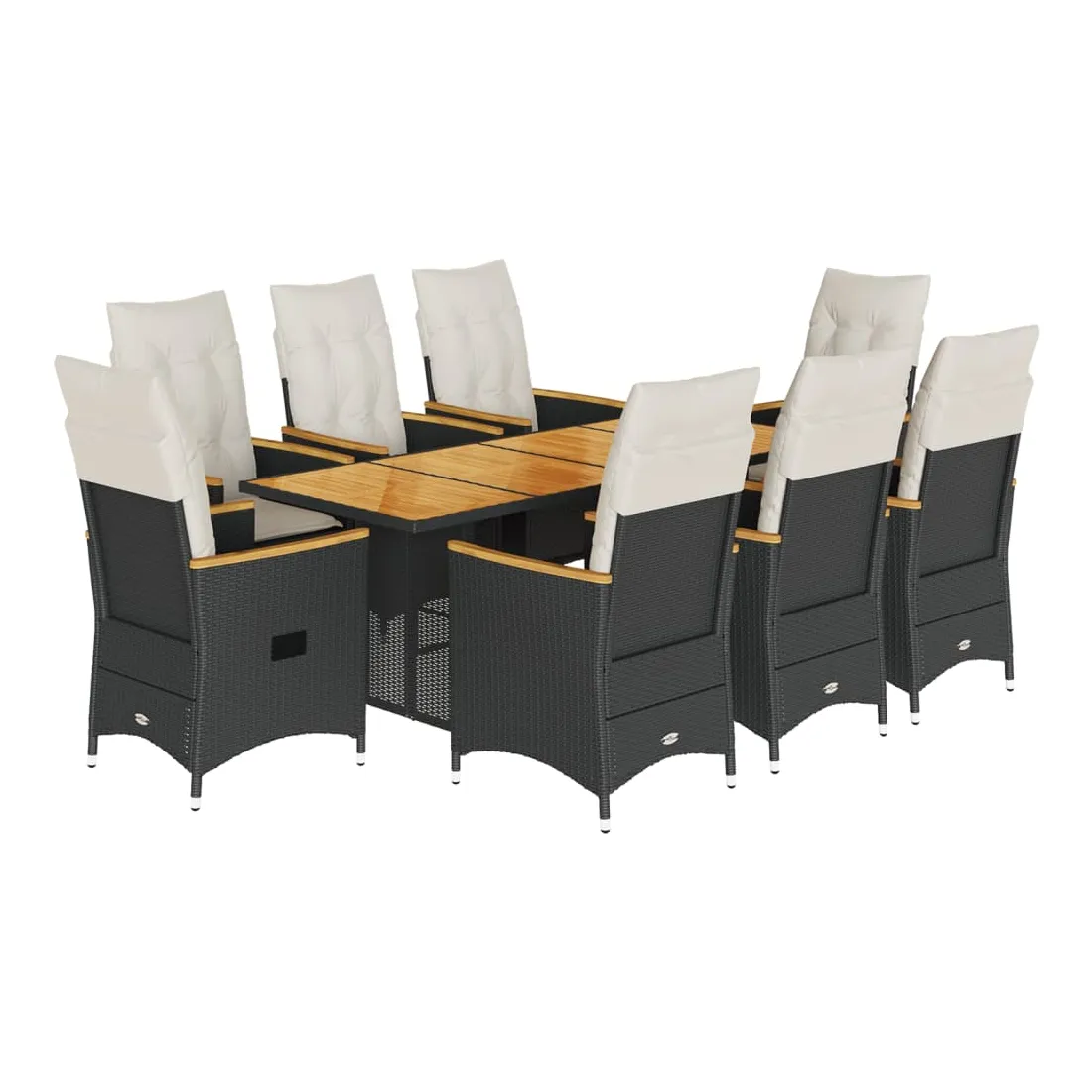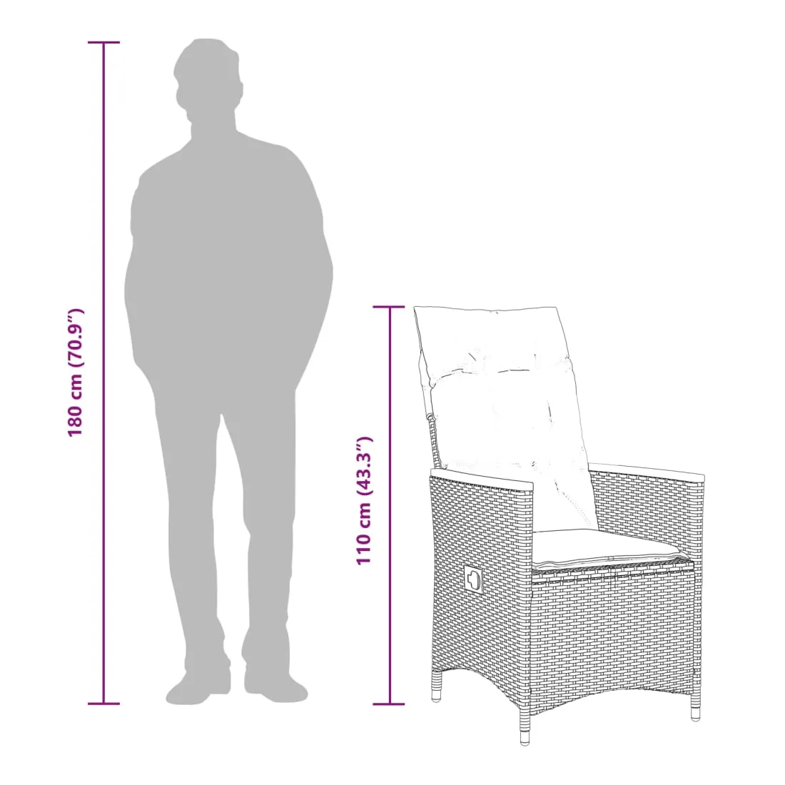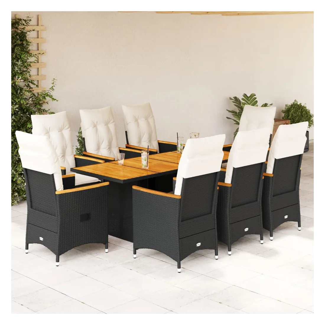 Cet ensemble de salle à manger de jardin est un excellent choix pour les repas en plein air ou pour vous détendre dans le jardin, dans l'arrière-cour ou sur la terrasse. Matériau durable : la résine tressée, également connue sous le nom de poly rotin, est un matériau synthétique solide et nécessitant peu d'entretien qui ressemble au rotin naturel. Elle est légère, facile à nettoyer et couramment utilisée pour les meubles d'extérieur en raison de sa durabilité et de ses propriétés de résistance aux intempéries.Dossier réglable : ce siège de jardin est doté d'une poignée. Vous pouvez régler le dossier dans n'importe quelle position en tirant sur la poignée et le remettre rapidement dans sa position initiale.Dessus stable et facile à nettoyer : cette table de jardin a un dessus en bois d'acacia robuste, durable et facile à nettoyer avec un chiffon humide.Expérience d'assise confortable : cet ensemble de meubles d'extérieur, doté de coussins épais, offre une expérience d'assise confortable.Housse amovible et lavable : ces coussins de siège sont dotés de housses amovibles pour un lavage et un entretien faciles. Les coussins de dossier ont un rabat à l'arrière pour une fixation facile aux dossiers. Bon à savoir :Pour que vos meubles d'extérieur restent beaux, nous vous recommandons de les protéger avec une housse imperméable.