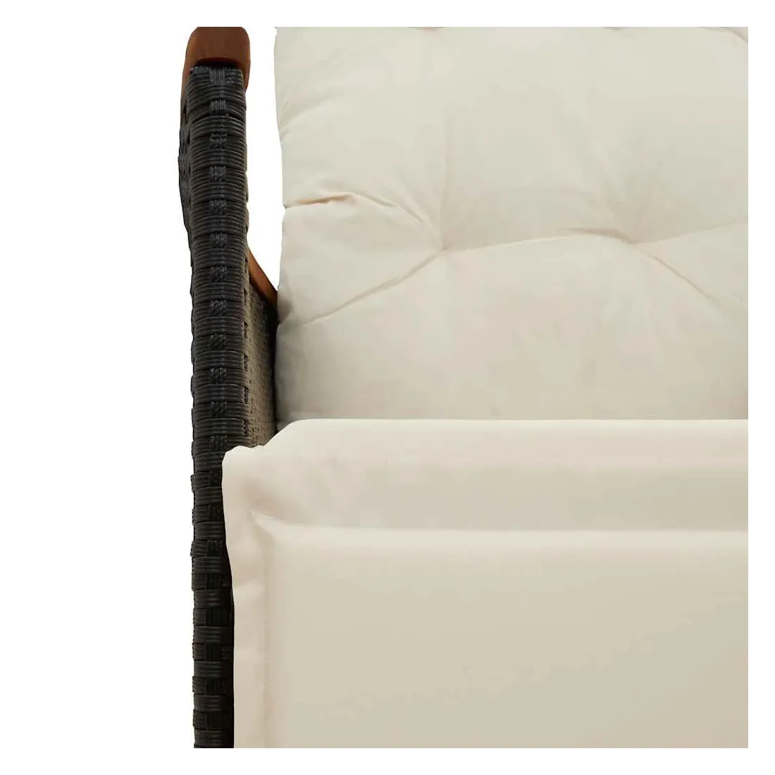 - Matériaux : Rotin PE, acier thermolaqué, bois d'acacia massif finition huilée