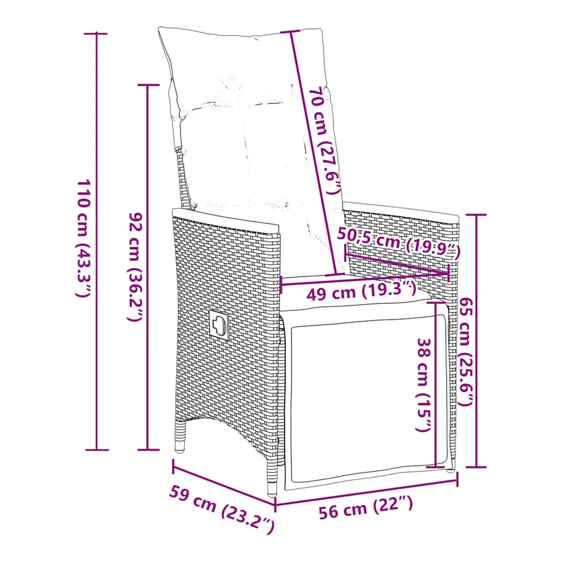 - 2 x Fauteuils de jardin inclinables avec repose-pieds
