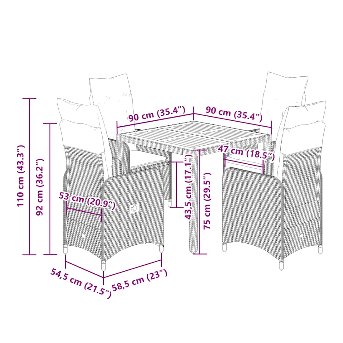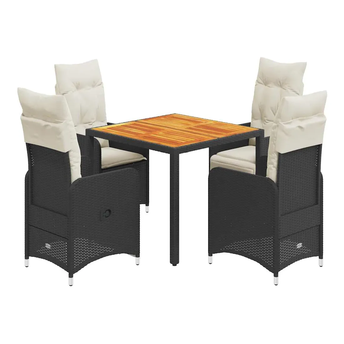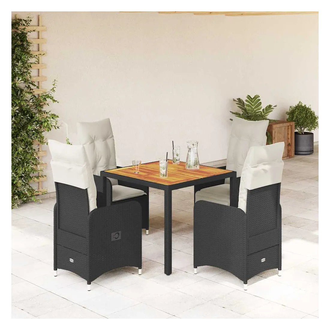 Savourez un café ou discutez avec votre famille et vos amis dans le jardin, la cour arrière ou sur le balcon grâce à cet ensemble bistrot confortable ! Matériau durable : le rotin PE, également appelé polyrotin, est un matériau synthétique solide et facile d'entretien qui ressemble au rotin naturel. Il est léger, facile à nettoyer et couramment utilisé pour les meubles d'extérieur en raison de sa durabilité et de ses propriétés résistantes aux intempéries. Dossier réglable : ce siège de jardin est équipé d'une poignée. Vous pouvez régler le dossier dans n'importe quelle position en tirant sur la poignée, puis le remettre rapidement dans sa position d'origine. Assise confortable : ce mobilier d'extérieur, doté de coussins épais et rembourrés, offre une assise confortable. Housse amovible et lavable : les coussins d'assise sont dotés de housses amovibles pour faciliter le lavage et l'entretien. Les coussins de dossier sont dotés d'un rabat à l'arrière pour faciliter leur fixation aux dossiers. Plateau stable et facile à nettoyer : cette table de jardin est dotée d'un plateau en bois d'acacia robuste, durable et facile à nettoyer avec un chiffon humide. Bon à savoir :Pour que votre mobilier d'extérieur reste beau, nous vous recommandons de le protéger avec une housse imperméable.