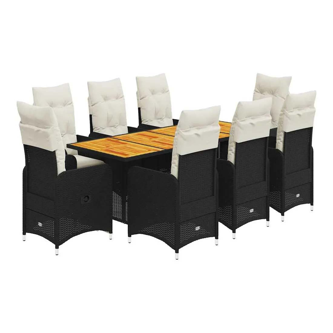 - Matériaux : Rotin PE, acier, bois d’acacia massif finition huilée