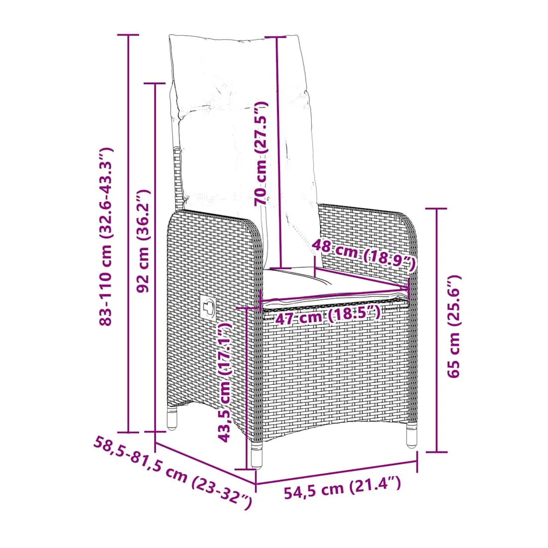 - Dimensions assise : 54,5 x 58,5 x 92 cm (l x P x H)
