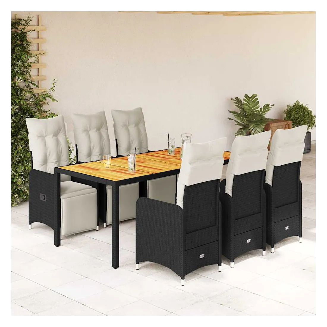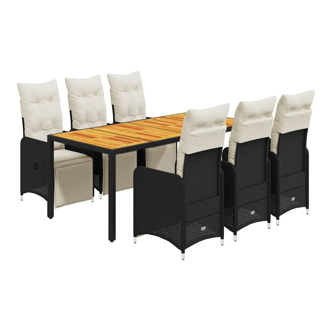 Savourez un café ou discutez avec votre famille et vos amis dans le jardin, l'arrière-cour ou sur le balcon avec cet ensemble de bistro confortable ! Matériau durable : la résine tressée, également connue sous le nom de poly rotin, est un matériau synthétique solide et nécessitant peu d'entretien qui ressemble au rotin naturel. Elle est légère, facile à nettoyer et couramment utilisée pour les meubles d'extérieur en raison de sa durabilité et de ses propriétés de résistance aux intempéries.Dossier et repose-pied réglables : ce siège de jardin est doté d'une poignée. Vous pouvez régler le dossier et le repose-pied dans n'importe quelle position en tirant sur la poignée, et le remettre rapidement dans sa position initiale.Expérience d'assise confortable : ce mobilier d'extérieur, doté de coussins épais, offre une expérience d'assise confortable.Housse amovible et lavable : ces coussins de siège sont dotés de housses amovibles pour un lavage et un entretien faciles. Les coussins de dossier ont un rabat à l'arrière pour une fixation facile aux dossiers.Dessus stable et facile à nettoyer : cette table de jardin a un dessus en bois d'acacia robuste, durable et facile à nettoyer avec un chiffon humide. Bon à savoir :Pour que vos meubles d'extérieur restent beaux, nous vous recommandons de les protéger avec une housse imperméable.