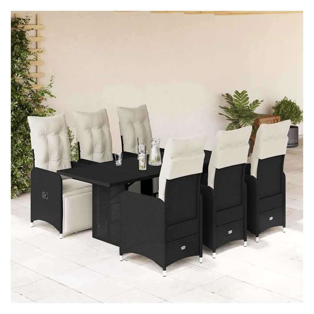 Savourez un café ou discutez avec votre famille et vos amis dans le jardin, l'arrière-cour ou sur le balcon avec cet ensemble de bistro confortable ! Matériau durable : la résine tressée, également connue sous le nom de poly rotin, est un matériau synthétique solide et nécessitant peu d'entretien qui ressemble au rotin naturel. Elle est légère, facile à nettoyer et couramment utilisée pour les meubles d'extérieur en raison de sa durabilité et de ses propriétés de résistance aux intempéries.Dossier et repose-pied réglables : ce siège de jardin est doté d'une poignée. Vous pouvez régler le dossier et le repose-pied dans n'importe quelle position en tirant sur la poignée, et le remettre rapidement dans sa position initiale.Expérience d'assise confortable : ce mobilier d'extérieur, doté de coussins épais, offre une expérience d'assise confortable.Housse amovible et lavable : ces coussins de siège sont dotés de housses amovibles pour un lavage et un entretien faciles. Les coussins de dossier ont un rabat à l'arrière pour une fixation facile aux dossiers.Dessus en verre : le dessus de la table d'extérieur est fabriqué en verre trempé solide et durable, ce qui le rend facile à nettoyer avec un chiffon humide et ajoute une touche d'élégance à votre espace extérieur. Bon à savoir :Pour que vos meubles d'extérieur restent beaux, nous vous recommandons de les protéger avec une housse imperméable.