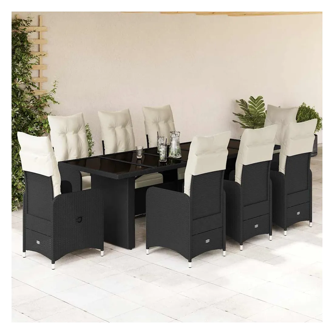 Savourez un café ou discutez avec votre famille et vos amis dans le jardin, l'arrière-cour ou sur le balcon avec cet ensemble de bistro confortable ! Matériau durable : la résine tressée, également connue sous le nom de poly rotin, est un matériau synthétique solide et nécessitant peu d'entretien qui ressemble au rotin naturel. Elle est légère, facile à nettoyer et couramment utilisée pour les meubles d'extérieur en raison de sa durabilité et de ses propriétés de résistance aux intempéries.Dossier et repose-pied réglables : ce siège de jardin est doté d'une poignée. Vous pouvez régler le dossier et le repose-pied dans n'importe quelle position en tirant sur la poignée, et le remettre rapidement dans sa position initiale.Expérience d'assise confortable : ce mobilier d'extérieur, doté de coussins épais, offre une expérience d'assise confortable.Housse amovible et lavable : ces coussins de siège sont dotés de housses amovibles pour un lavage et un entretien faciles. Les coussins de dossier ont un rabat à l'arrière pour une fixation facile aux dossiers.Dessus en verre : le dessus de la table d'extérieur est fabriqué en verre trempé solide et durable, ce qui le rend facile à nettoyer avec un chiffon humide et ajoute une touche d'élégance à votre espace extérieur. Bon à savoir :Pour que vos meubles d'extérieur restent beaux, nous vous recommandons de les protéger avec une housse imperméable.