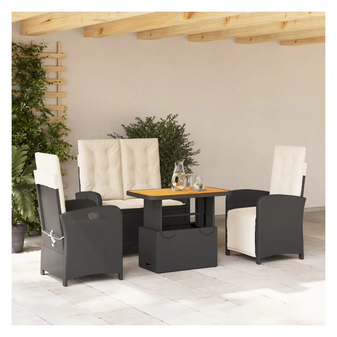 Cet ensemble de salle à manger de jardin est un excellent choix pour les repas en plein air ou simplement pour se détendre dans le jardin, la cour arrière ou sur la terrasse. Matériau durable : le rotin PE, également connu sous le nom de polyrotin, est un matériau synthétique solide et facile d'entretien qui ressemble au rotin naturel. Il est léger, facile à nettoyer et couramment utilisé pour les meubles d'extérieur en raison de sa durabilité et de ses propriétés de résistance aux intempéries. Dossier réglable : ce siège de jardin est équipé d'une poignée. Vous pouvez régler le dossier dans n'importe quelle position en tirant sur la poignée, puis le remettre rapidement dans sa position d'origine. Plateau réglable : le plateau peut être relevé pour rehausser la table, ce qui transforme la table d'extérieur en table basse ou en table à manger. Elle est parfaite pour recevoir des invités ou prendre des repas à l'extérieur. Housse amovible et lavable : ces coussins d'assise sont dotés de housses amovibles pour faciliter le lavage et l'entretien. Les coussins de dossier sont munis d'un rabat à l'arrière pour faciliter leur fixation aux dossiers. Assise confortable : Ce mobilier d'extérieur, doté de coussins épais et rembourrés, offre une assise confortable. Bon à savoir :Pour que votre mobilier d'extérieur reste beau, nous vous recommandons de le protéger avec une housse imperméable.