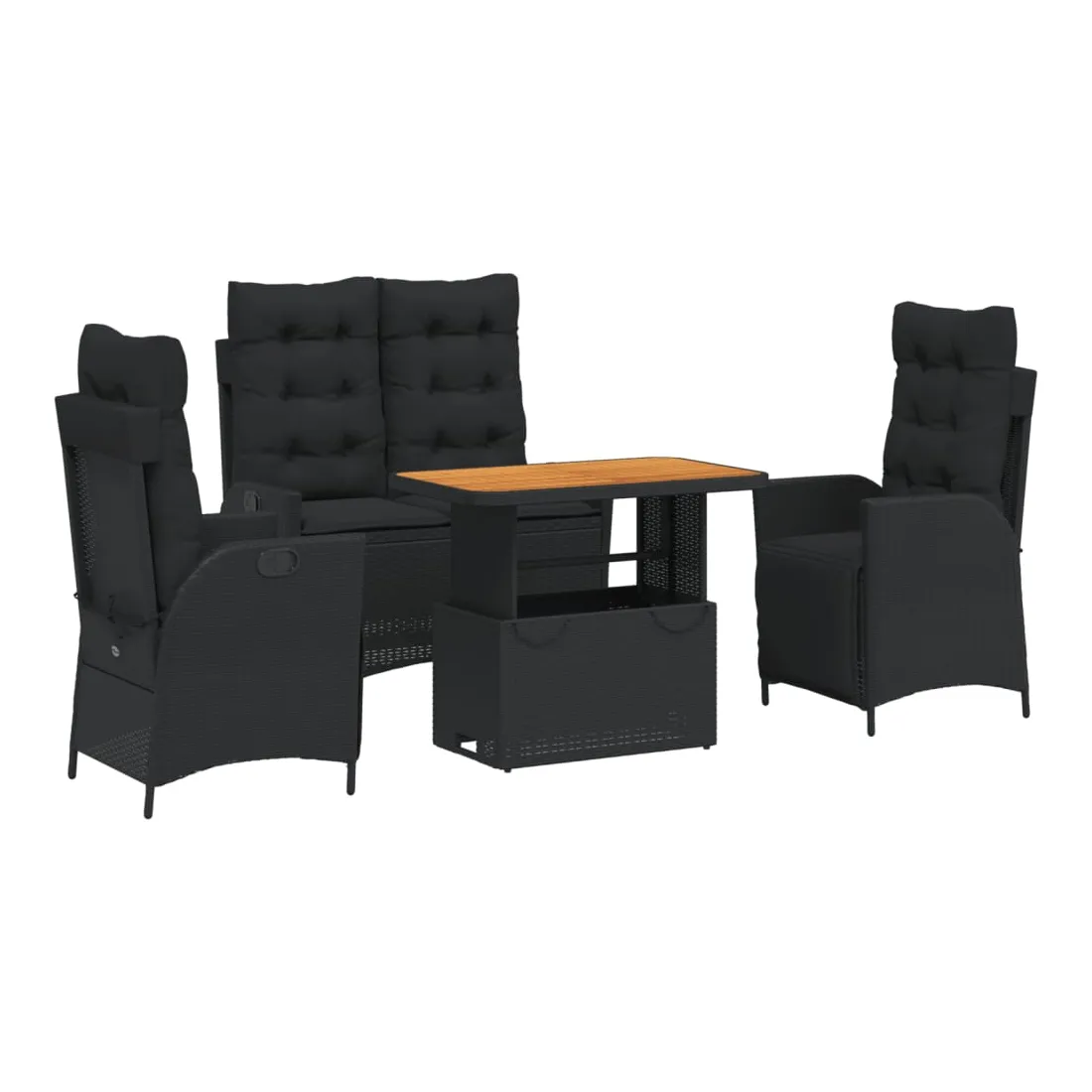 - Matériaux : Rotin PE, acier thermolaqué, bois d’acacia massif finition huilée