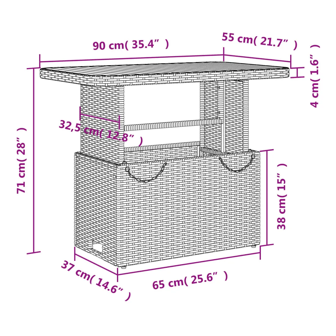 - Dimensions de la table : 90 x 55 x 40/71 cm (L x l x H)