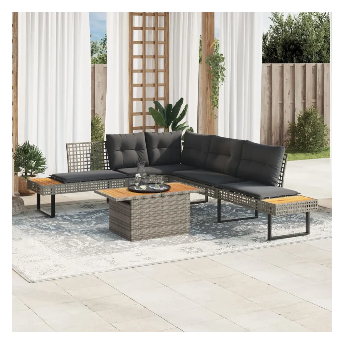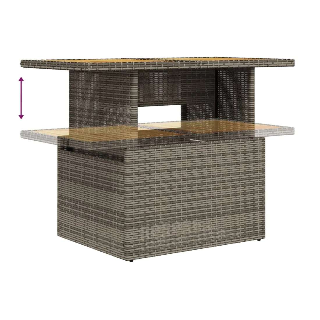 Cet ensemble de canapés de jardin est le complément parfait de votre arrière-cour, terrasse ou patio, offrant un espace confortable et accueillant pour discuter avec la famille et les amis ou simplement se détendre et profiter de l'extérieur. Matériau durable : la résine tressée, également connue sous le nom de poly rotin, est un matériau synthétique solide et nécessitant peu d'entretien qui ressemble au rotin naturel. Elle est légère, facile à nettoyer et couramment utilisée pour les meubles d'extérieur en raison de sa durabilité et de ses propriétés de résistance aux intempéries.Expérience d'assise confortable : l'ensemble de meubles d'extérieur, doté de coussins épais, offre une expérience d'assise confortable.Housse amovible et lavable : ces coussins de siège sont dotés de housses amovibles pour un lavage et un entretien faciles.Dessus de table réglable : le dessus de table peut être soulevé pour rendre la table plus haute, ce qui transforme la table d'extérieur d'une table basse à une table de salle à manger. Elle est parfaite pour recevoir des invités ou prendre des repas à l'extérieur.Dessus stable et facile à nettoyer : cette table de jardin a un dessus en bois d'acacia robuste, durable et facile à nettoyer avec un chiffon humide. Bon à savoir :Pour que vos meubles d'extérieur restent beaux, nous vous recommandons de les protéger avec une housse imperméable.