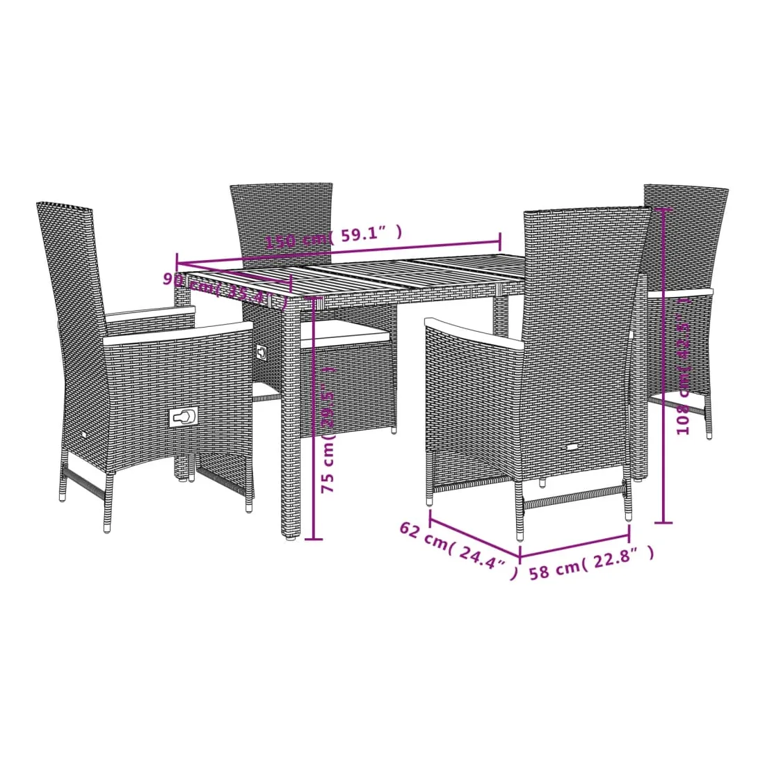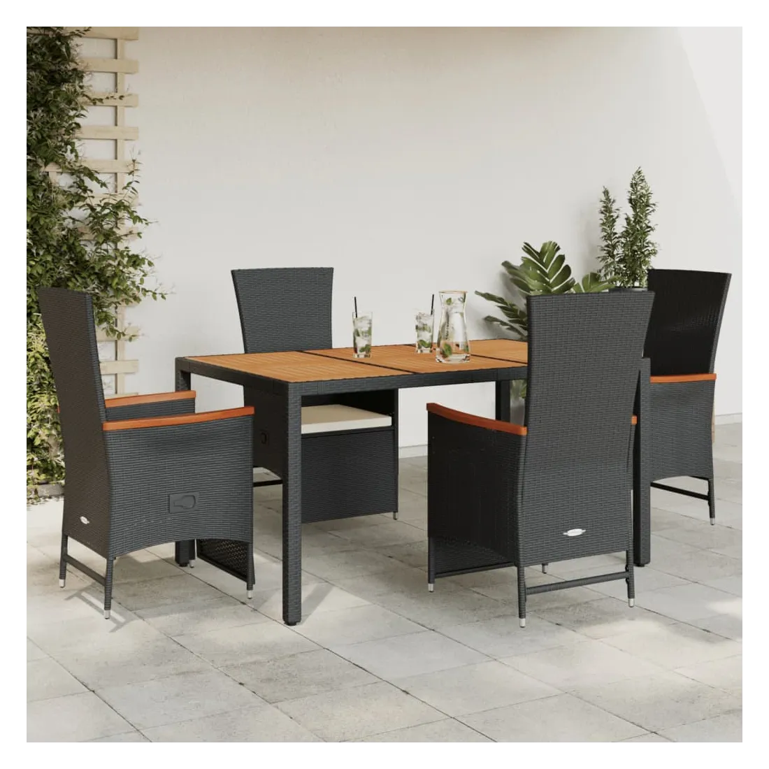 Cet ensemble de salle à manger de jardin est un excellent choix pour les repas en plein air ou pour vous détendre dans le jardin, dans l'arrière-cour ou sur la terrasse. Matériau durable : la résine tressée, également connue sous le nom de poly rotin, est un matériau synthétique solide et nécessitant peu d'entretien qui ressemble au rotin naturel. Il est léger, facile à nettoyer et couramment utilisé pour les meubles d'extérieur en raison de sa durabilité et de ses propriétés de résistance aux intempéries.Dossier et repose-pied réglables : ce siège de jardin est doté d'une poignée. Vous pouvez régler le dossier et le repose-pied dans n'importe quelle position en tirant sur la poignée, et les remettre rapidement dans leur position initiale.Expérience d'assise confortable : ce mobilier d'extérieur, doté de coussins épais, offre une expérience d'assise confortable.Housse amovible et lavable : ces coussins de siège sont dotés de housses amovibles pour un lavage et un entretien faciles.Dessus stable et facile à nettoyer : cette table de jardin a un dessus en bois d'acacia robuste, durable et facile à nettoyer avec un chiffon humide. Bon à savoir :Pour que vos meubles d'extérieur restent beaux, nous vous recommandons de les protéger avec une housse imperméable.