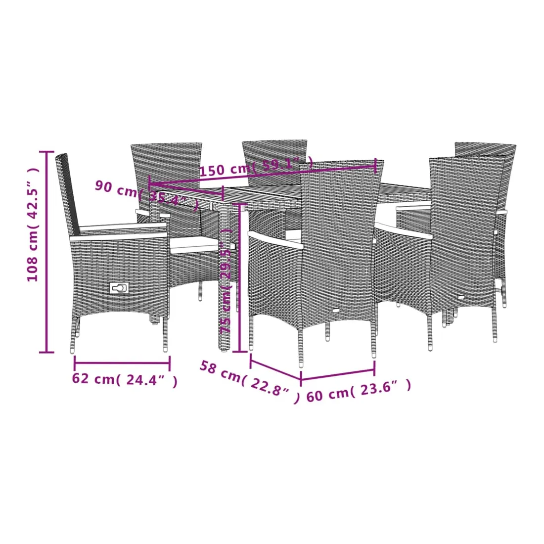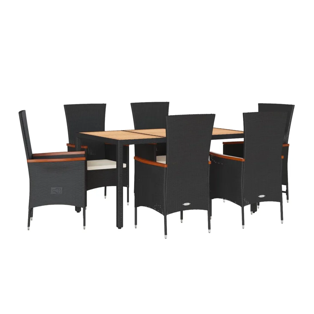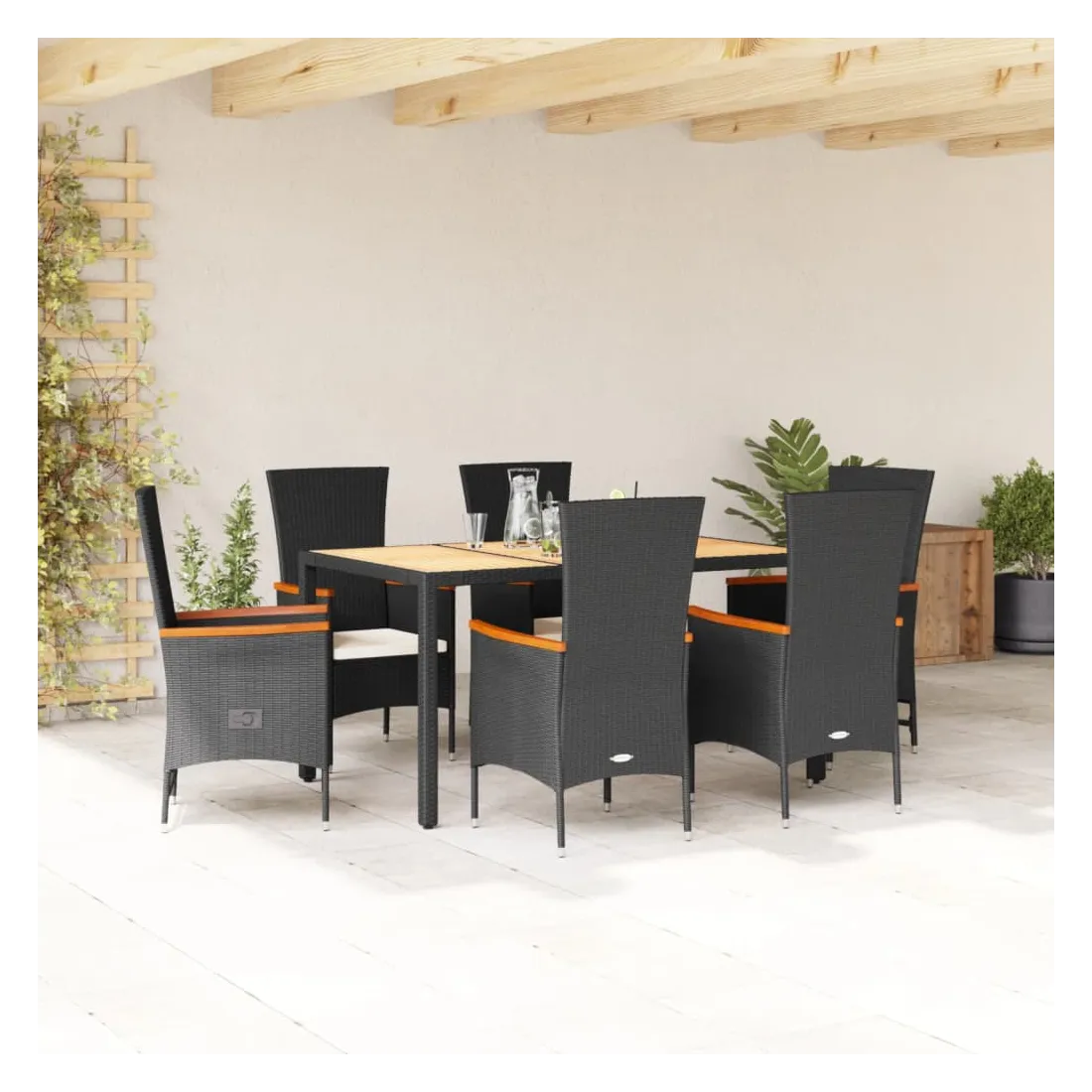 Cet ensemble de salle à manger de jardin est un excellent choix pour les repas en plein air ou pour vous détendre dans le jardin, dans l'arrière-cour ou sur la terrasse. Matériau durable : la résine tressée, également connue sous le nom de poly rotin, est un matériau synthétique solide et nécessitant peu d'entretien qui ressemble au rotin naturel. Il est léger, facile à nettoyer et couramment utilisé pour les meubles d'extérieur en raison de sa durabilité et de ses propriétés de résistance aux intempéries.Dossier réglable : ce siège de jardin est doté d'une poignée. Vous pouvez régler le dossier dans n'importe quelle position en tirant sur la poignée et le remettre rapidement dans sa position initiale.Expérience d'assise confortable : ce mobilier d'extérieur, doté de coussins épais, offre une expérience d'assise confortable.Housse amovible et lavable : ces coussins de siège sont dotés de housses amovibles pour un lavage et un entretien faciles.Dessus stable et facile à nettoyer : cette table de jardin a un dessus en bois d'acacia robuste, durable et facile à nettoyer avec un chiffon humide. Bon à savoir :Pour que vos meubles d'extérieur restent beaux, nous vous recommandons de les protéger avec une housse imperméable.