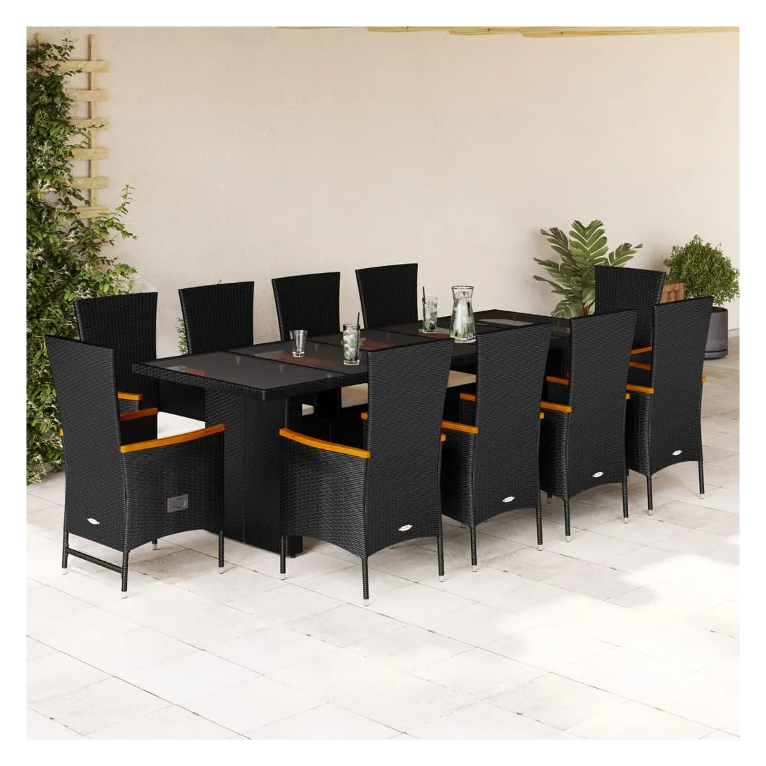- Matériau : résine tressée, acier enduit de poudre, bois d'acacia massif avec finition à l'huile