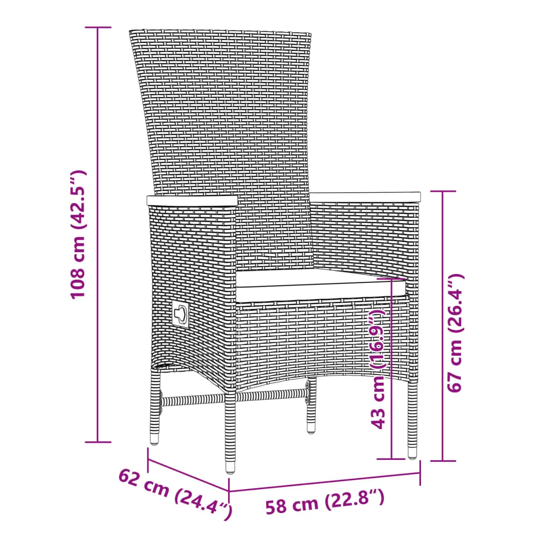 Cet ensemble de salle à manger de jardin est un excellent choix pour les repas en plein air ou pour vous détendre dans le jardin, dans l'arrière-cour ou sur la terrasse. Matériau durable : la résine tressée, également connue sous le nom de poly rotin, est un matériau synthétique solide et nécessitant peu d'entretien qui ressemble au rotin naturel. Il est léger, facile à nettoyer et couramment utilisé pour les meubles d'extérieur en raison de sa durabilité et de ses propriétés de résistance aux intempéries.Dossier réglable : ce siège de jardin est doté d'une poignée. Vous pouvez régler le dossier dans n'importe quelle position en tirant sur la poignée et le remettre rapidement dans sa position initiale.Expérience d'assise confortable : ce mobilier d'extérieur, doté de coussins épais, offre une expérience d'assise confortable.Housse amovible et lavable : ces coussins de siège sont dotés de housses amovibles pour un lavage et un entretien faciles.Dessus en verre : le dessus de la table d'extérieur est fabriqué en verre trempé solide et durable, ce qui le rend facile à nettoyer avec un chiffon humide et ajoute une touche d'élégance à votre espace extérieur. Bon à savoir :Pour que vos meubles d'extérieur restent beaux, nous vous recommandons de les protéger avec une housse imperméable.