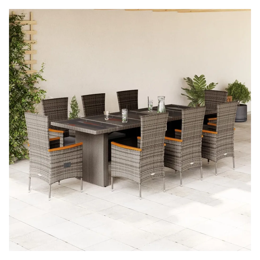 Cet ensemble de salle à manger de jardin est un excellent choix pour les repas en plein air ou pour vous détendre dans le jardin, dans l'arrière-cour ou sur la terrasse. Matériau durable : la résine tressée, également connue sous le nom de poly rotin, est un matériau synthétique solide et nécessitant peu d'entretien qui ressemble au rotin naturel. Il est léger, facile à nettoyer et couramment utilisé pour les meubles d'extérieur en raison de sa durabilité et de ses propriétés de résistance aux intempéries.Dossier réglable : ce siège de jardin est doté d'une poignée. Vous pouvez régler le dossier dans n'importe quelle position en tirant sur la poignée et le remettre rapidement dans sa position initiale.Expérience d'assise confortable : ce mobilier d'extérieur, doté de coussins épais, offre une expérience d'assise confortable.Housse amovible et lavable : ces coussins de siège sont dotés de housses amovibles pour un lavage et un entretien faciles.Dessus en verre : le dessus de la table d'extérieur est fabriqué en verre trempé solide et durable, ce qui le rend facile à nettoyer avec un chiffon humide et ajoute une touche d'élégance à votre espace extérieur. Bon à savoir :Pour que vos meubles d'extérieur restent beaux, nous vous recommandons de les protéger avec une housse imperméable.