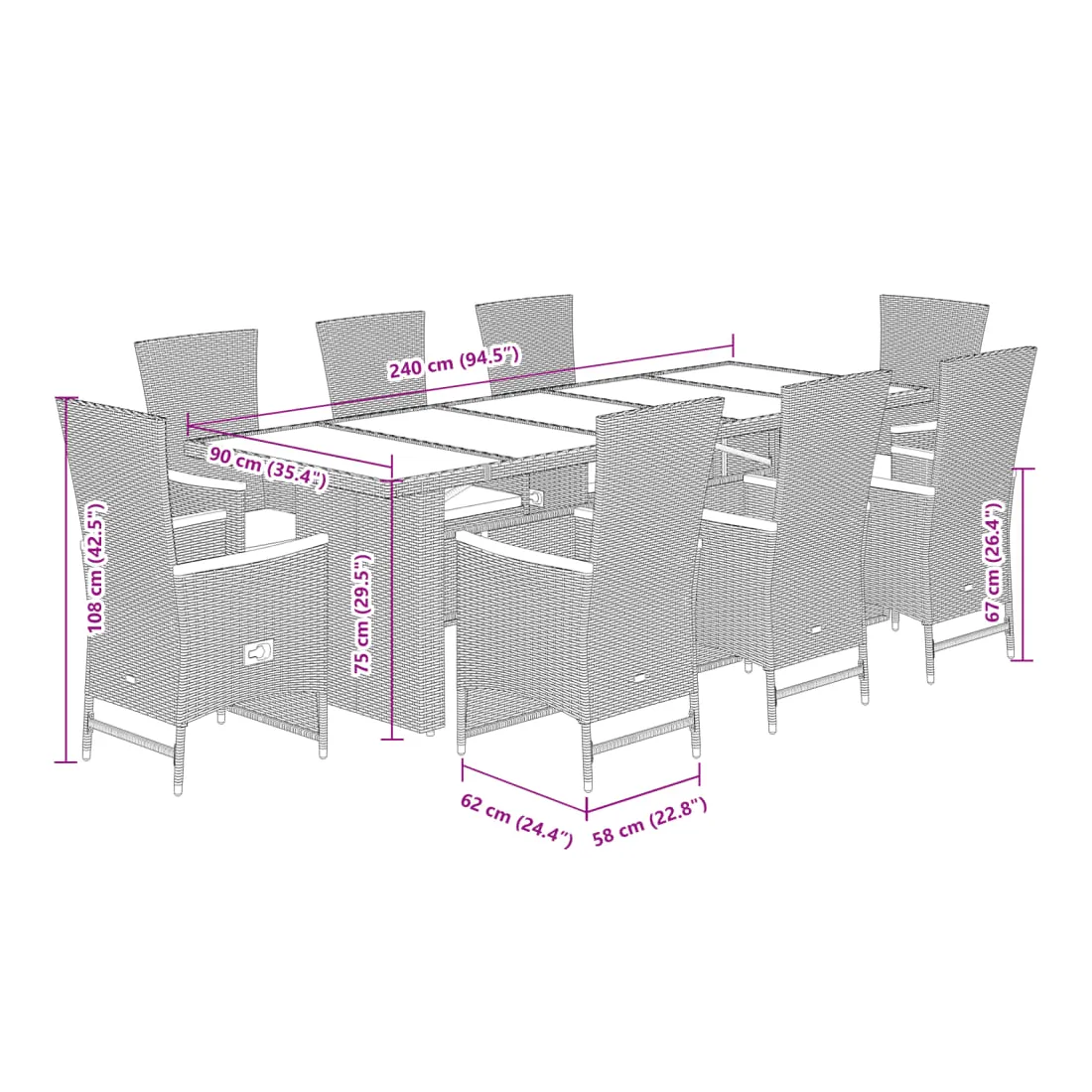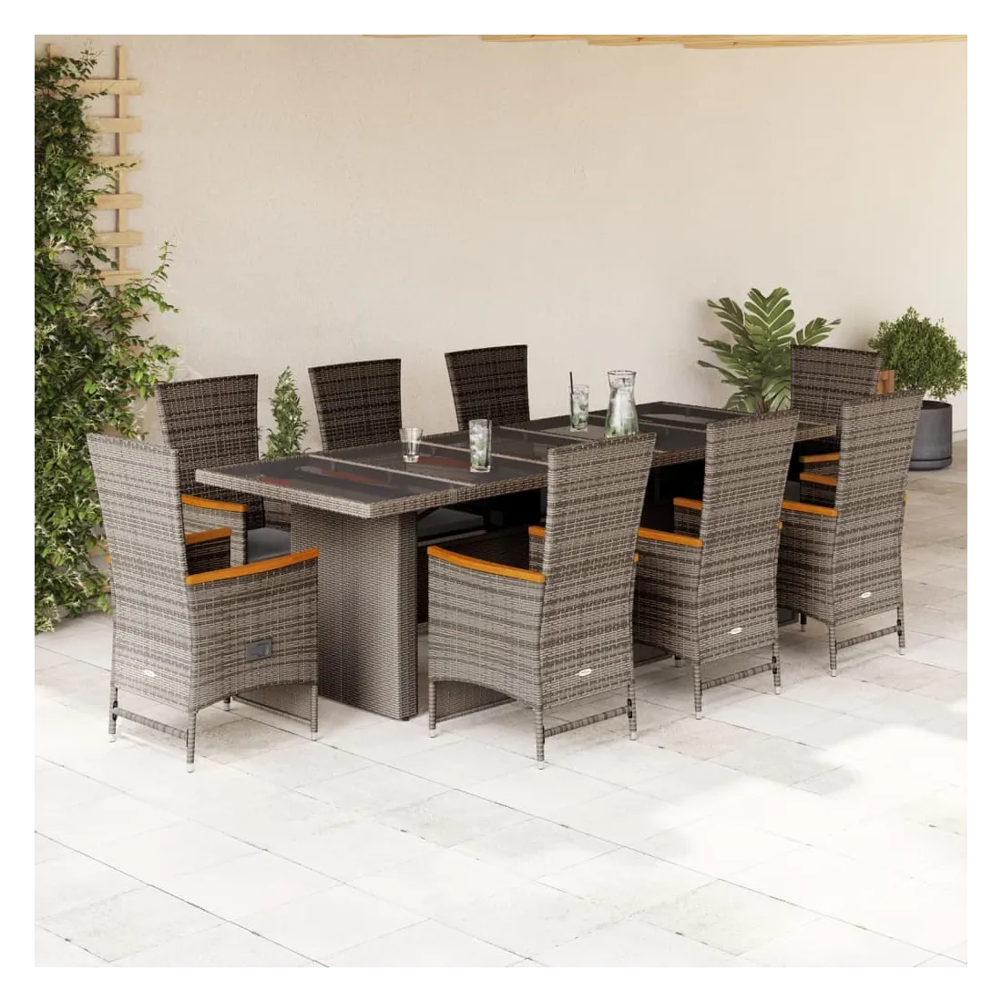 Cet ensemble de salle à manger de jardin est un excellent choix pour les repas en plein air ou pour vous détendre dans le jardin, dans l'arrière-cour ou sur la terrasse. Matériau durable : la résine tressée, également connue sous le nom de poly rotin, est un matériau synthétique solide et nécessitant peu d'entretien qui ressemble au rotin naturel. Il est léger, facile à nettoyer et couramment utilisé pour les meubles d'extérieur en raison de sa durabilité et de ses propriétés de résistance aux intempéries.Dossier et repose-pied réglables : ce siège de jardin est doté d'une poignée. Vous pouvez régler le dossier et le repose-pied dans n'importe quelle position en tirant sur la poignée, et le remettre rapidement dans sa position initiale.Expérience d'assise confortable : ce mobilier d'extérieur, doté de coussins épais, offre une expérience d'assise confortable.Housse amovible et lavable : ces coussins de siège sont dotés de housses amovibles pour un lavage et un entretien faciles.Dessus en verre : le dessus de la table d'extérieur est fabriqué en verre trempé solide et durable, ce qui le rend facile à nettoyer avec un chiffon humide et ajoute une touche d'élégance à votre espace extérieur. Bon à savoir :Pour que vos meubles d'extérieur restent beaux, nous vous recommandons de les protéger avec une housse imperméable.