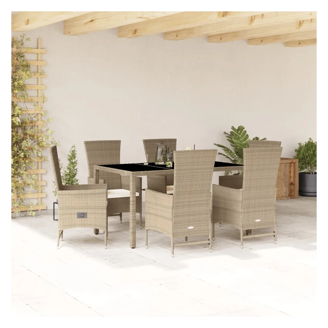 Cet ensemble de salle à manger de jardin est un excellent choix pour les repas en plein air ou pour vous détendre dans le jardin, dans l'arrière-cour ou sur la terrasse. Matériau durable : la résine tressée, également connue sous le nom de poly rotin, est un matériau synthétique solide et nécessitant peu d'entretien qui ressemble au rotin naturel. Il est léger, facile à nettoyer et couramment utilisé pour les meubles d'extérieur en raison de sa durabilité et de ses propriétés de résistance aux intempéries.Dossier réglable : ce siège de jardin est doté d'une poignée. Vous pouvez régler le dossier dans n'importe quelle position en tirant sur la poignée et le remettre rapidement dans sa position initiale.Expérience d'assise confortable : ce mobilier d'extérieur, doté de coussins épais, offre une expérience d'assise confortable.Housse amovible et lavable : ces coussins de siège sont dotés de housses amovibles pour un lavage et un entretien faciles.Dessus en verre : le dessus de la table d'extérieur est fabriqué en verre trempé solide et durable, ce qui le rend facile à nettoyer avec un chiffon humide et ajoute une touche d'élégance à votre espace extérieur. Bon à savoir :Pour que vos meubles d'extérieur restent beaux, nous vous recommandons de les protéger avec une housse imperméable.