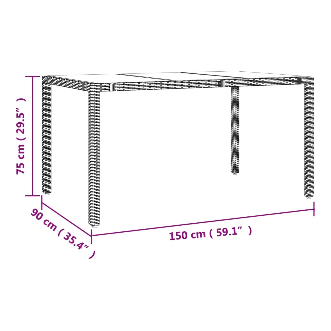 - longueur de table de 150 cm