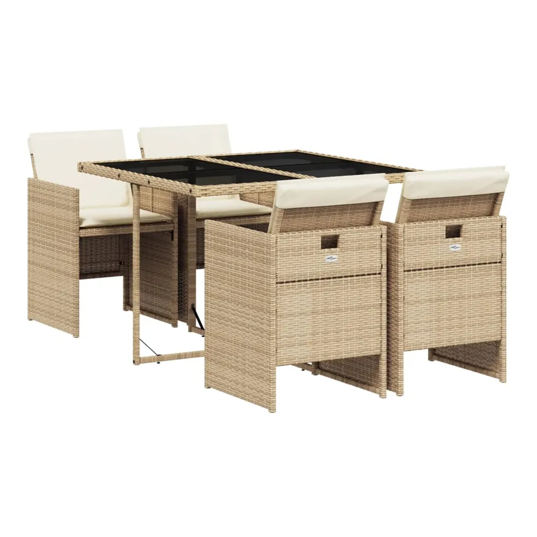 Cet ensemble de salle à manger de jardin est un excellent choix pour les repas en plein air ou pour vous détendre dans le jardin, dans l'arrière-cour ou sur la terrasse. Matériau durable : la résine tressée, également connue sous le nom de poly rotin, est un matériau synthétique solide et nécessitant peu d'entretien qui ressemble au rotin naturel. Il est léger, facile à nettoyer et couramment utilisé pour les meubles d'extérieur en raison de sa durabilité et de ses propriétés de résistance aux intempéries.Rangement compact : ces chaises sont dotées d'un dossier rabattable, ce qui permet de les ranger facilement sous la table. Une fois pliées, elles se rangent parfaitement sous la table, formant un cube peu encombrant. Expérience d'assise confortable : ce mobilier d'extérieur, doté de coussins épais, offre une expérience d'assise confortable.Housse amovible et lavable : ces coussins de siège sont dotés de housses amovibles pour un lavage et un entretien faciles.Dessus en verre : le dessus de la table d'extérieur est fabriqué en verre trempé solide et durable, ce qui le rend facile à nettoyer avec un chiffon humide et ajoute une touche d'élégance à votre espace extérieur. Bon à savoir : Pour que vos meubles d'extérieur restent beaux, nous vous recommandons de les protéger avec une housse imperméable.
