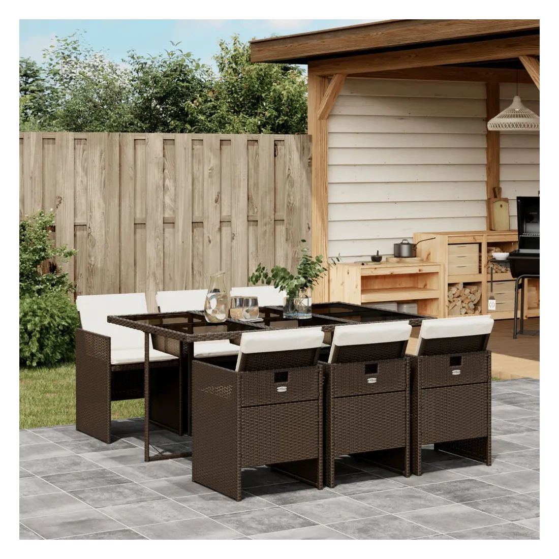 Cet ensemble de salle à manger de jardin est un excellent choix pour les repas en plein air ou pour vous détendre dans le jardin, dans l'arrière-cour ou sur la terrasse. Matériau durable : la résine tressée, également connue sous le nom de poly rotin, est un matériau synthétique solide et nécessitant peu d'entretien qui ressemble au rotin naturel. Il est léger, facile à nettoyer et couramment utilisé pour les meubles d'extérieur en raison de sa durabilité et de ses propriétés de résistance aux intempéries.Rangement compact : ces chaises sont dotées d'un dossier rabattable, ce qui permet de les ranger facilement sous la table. Une fois pliées, elles se rangent parfaitement sous la table, formant un cube peu encombrant. Expérience d'assise confortable : ce mobilier d'extérieur, doté de coussins épais, offre une expérience d'assise confortable.Housse amovible et lavable : ces coussins de siège sont dotés de housses amovibles pour un lavage et un entretien faciles.Dessus en verre : le dessus de la table d'extérieur est fabriqué en verre trempé solide et durable, ce qui le rend facile à nettoyer avec un chiffon humide et ajoute une touche d'élégance à votre espace extérieur. Bon à savoir : Pour que vos meubles d'extérieur restent beaux, nous vous recommandons de les protéger avec une housse imperméable.