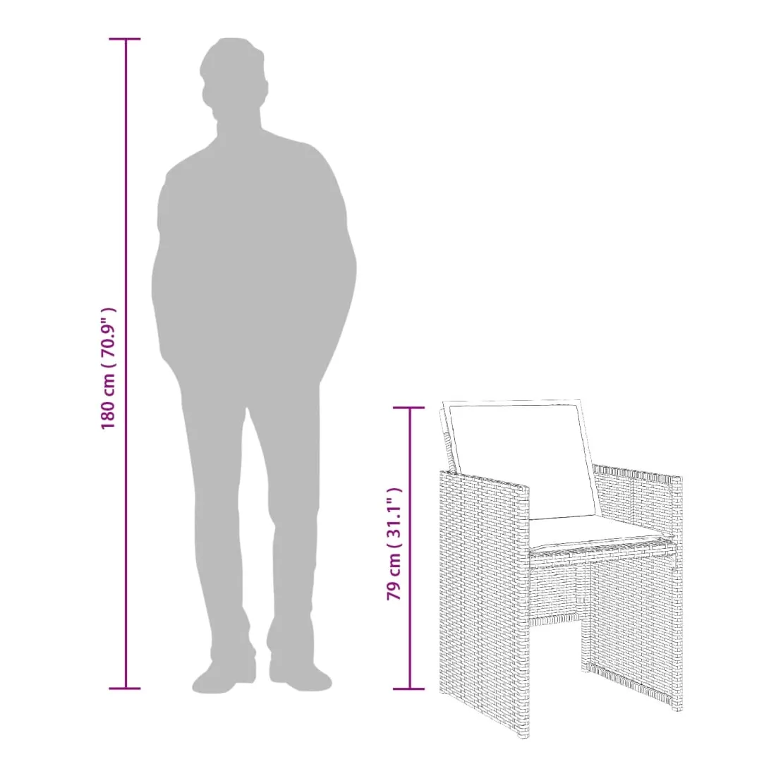 Cet ensemble de salle à manger de jardin est un excellent choix pour les repas en plein air ou pour vous détendre dans le jardin, dans l'arrière-cour ou sur la terrasse. Matériau durable : la résine tressée, également connue sous le nom de poly rotin, est un matériau synthétique solide et nécessitant peu d'entretien qui ressemble au rotin naturel. Il est léger, facile à nettoyer et couramment utilisé pour les meubles d'extérieur en raison de sa durabilité et de ses propriétés de résistance aux intempéries.Rangement compact : ces chaises sont dotées d'un dossier rabattable, ce qui permet de les ranger facilement sous la table. Une fois pliées, elles se rangent parfaitement sous la table, formant un cube peu encombrant. Expérience d'assise confortable : ce mobilier d'extérieur, doté de coussins épais, offre une expérience d'assise confortable.Housse amovible et lavable : ces coussins de siège sont dotés de housses amovibles pour un lavage et un entretien faciles.Dessus stable et facile à nettoyer : cette table de jardin a un dessus en bois d'acacia robuste, durable et facile à nettoyer avec un chiffon humide. Bon à savoir : Pour que vos meubles d'extérieur restent beaux, nous vous recommandons de les protéger avec une housse imperméable.