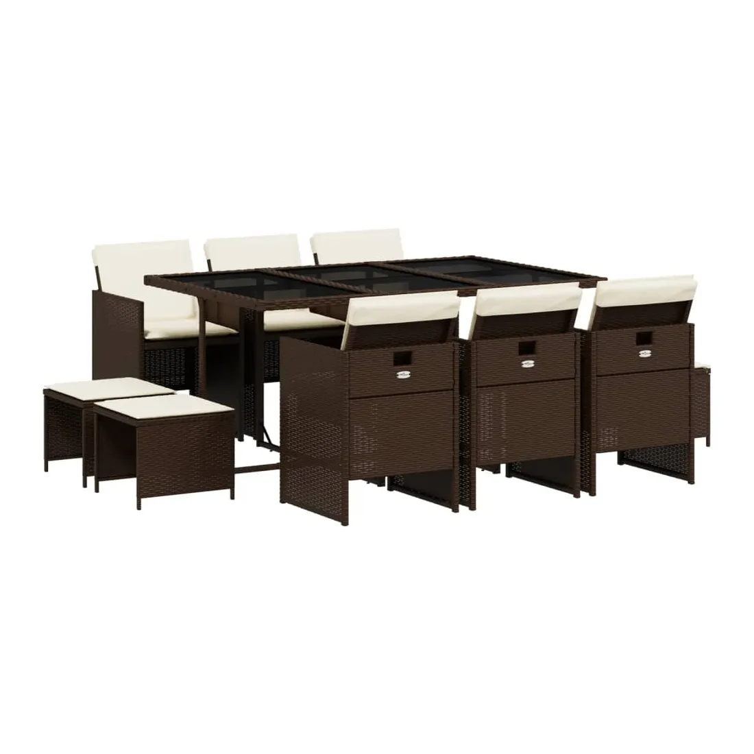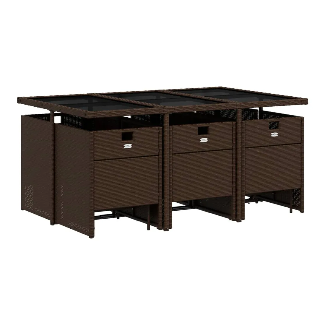 Cet ensemble de salle à manger de jardin est un excellent choix pour les repas en plein air ou pour vous détendre dans le jardin, dans l'arrière-cour ou sur la terrasse. Matériau durable : la résine tressée, également connue sous le nom de poly rotin, est un matériau synthétique solide et nécessitant peu d'entretien qui ressemble au rotin naturel. Il est léger, facile à nettoyer et couramment utilisé pour les meubles d'extérieur en raison de sa durabilité et de ses propriétés de résistance aux intempéries.Rangement compact : ces chaises sont dotées d'un dossier rabattable, ce qui permet de les ranger facilement sous la table. Une fois pliées, elles se rangent parfaitement sous la table, formant un cube peu encombrant. De plus, les tabourets peuvent également être rangés sous les chaises, maximisant encore davantage l'efficacité de l'espace. Expérience d'assise confortable : ce mobilier d'extérieur, doté de coussins épais, offre une expérience d'assise confortable.Housse amovible et lavable : ces coussins de siège sont dotés de housses amovibles pour un lavage et un entretien faciles.Dessus en verre : le dessus de la table d'extérieur est fabriqué en verre trempé solide et durable, ce qui le rend facile à nettoyer avec un chiffon humide et ajoute une touche d'élégance à votre espace extérieur. Bon à savoir : Pour que vos meubles d'extérieur restent beaux, nous vous recommandons de les protéger avec une housse imperméable.