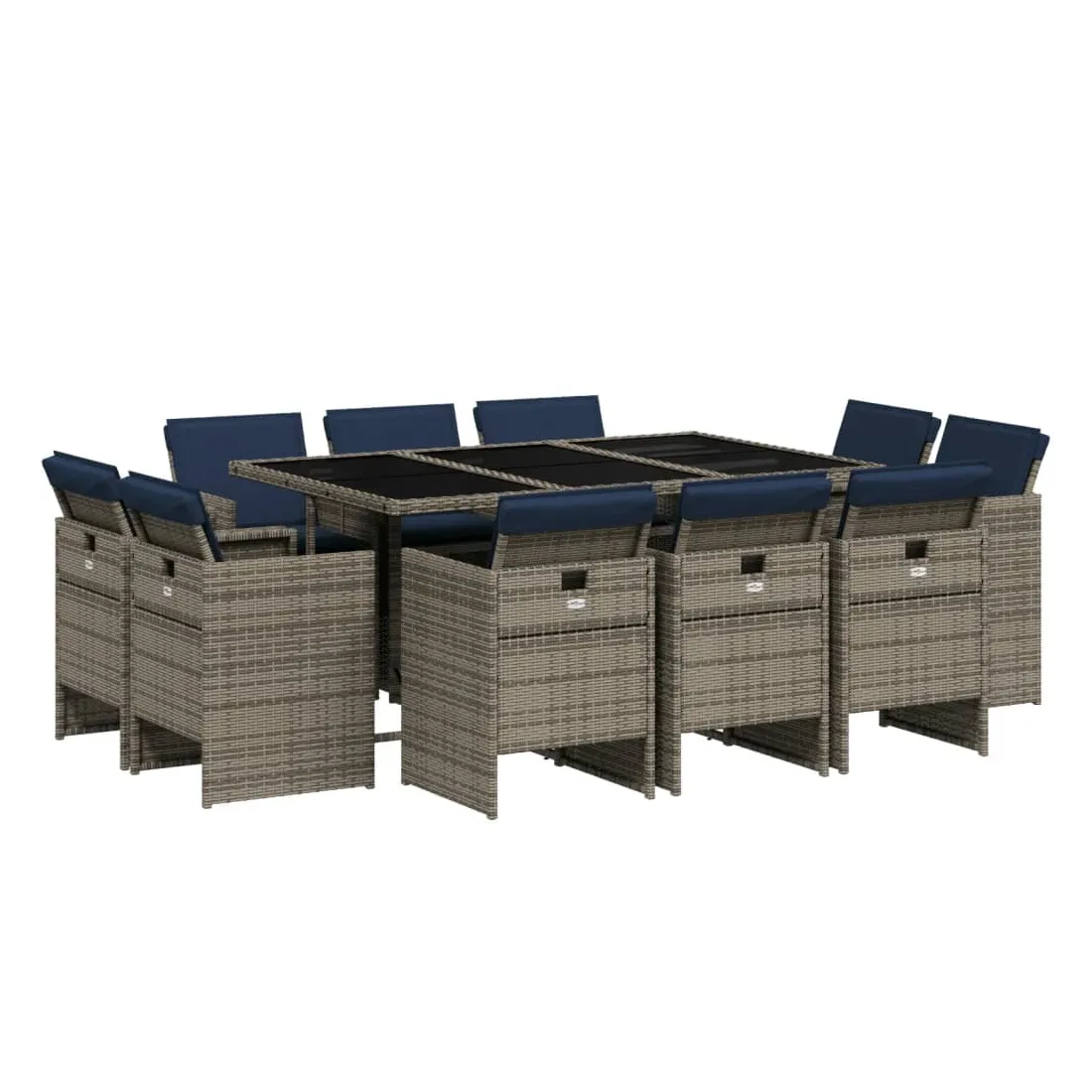 Ensemble à manger de jardin 11 pcs coussins gris résine tressée